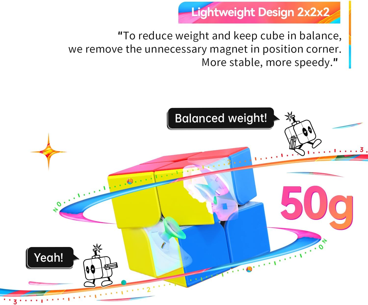 - WORIN DER UNTERSCHIED LIEGT -Der GAN 251 M Air besitzt fest eingestellte Eckenmagnete, allerdings keine Magnete im Kern. Dadurch wird das Gewicht reduziert und der Cube lässt sich sehr geradlinig drehen. Der Pro und der Leap verfügen über das gleiche,