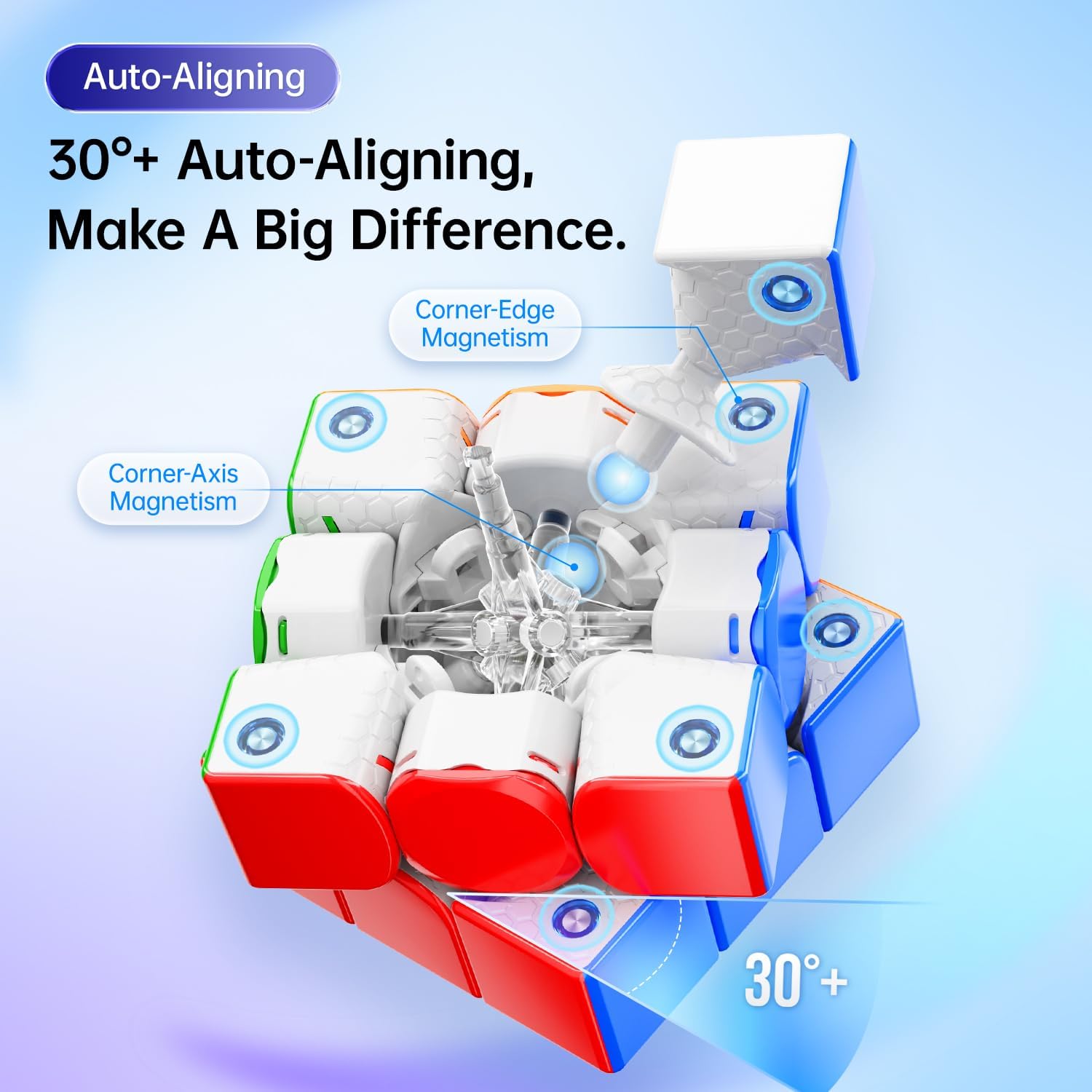 - 30°+ AUTO-ALIGNING - Verabschieden Sie sich von Fehlausrichtungen und sagen Sie hallo zur Präzision mit unserer innovativen magnetischen Kraftverteilung. Der GAN 356 Maglev profi puzzle magischer würfel richtet sich nicht nur aus; er passt sich