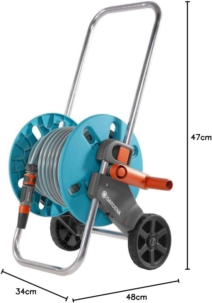 Gardena Carro Aquaroll S Con 20 m de manguera Classic, 13 mm(1/2”) de piezas Original System y Lanza