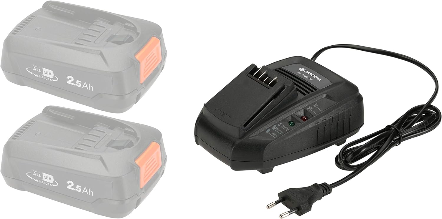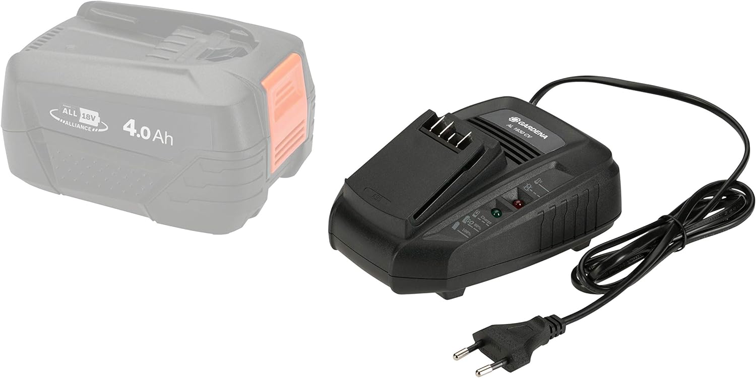 - Lieferumfang beinhaltet: 1x Gardena Schnell-Ladegerät AL 1830 CV