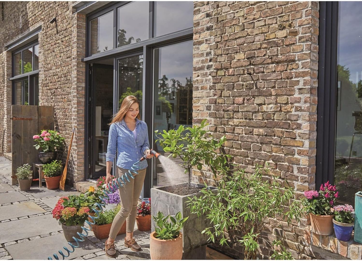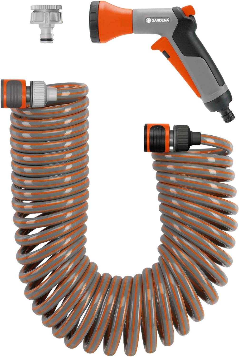 - Lieferumfang beinhaltet: 1x Gardena Spiralschlauch-Set-Aktion 10 m, inkl. Bewässerungsbrause, Wasserstopp, Schlauch- und Hahnverbinder