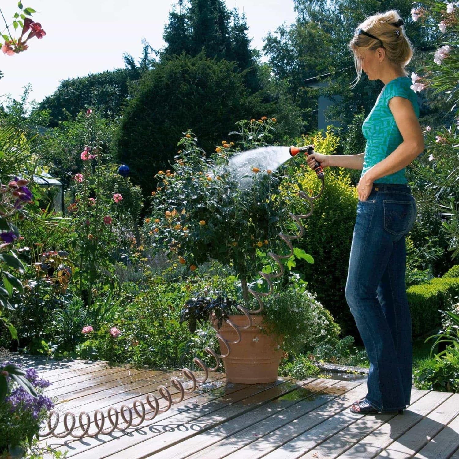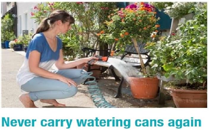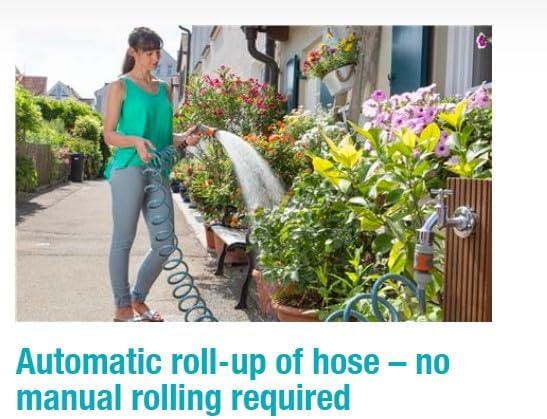 - Praktische Bewässerungslösung: Der spiralförmige Schlauch eignet sich hervorragend zum Giessen oder Bewässern kleiner Flächen im Garten, auf dem Balkon oder der Terrasse