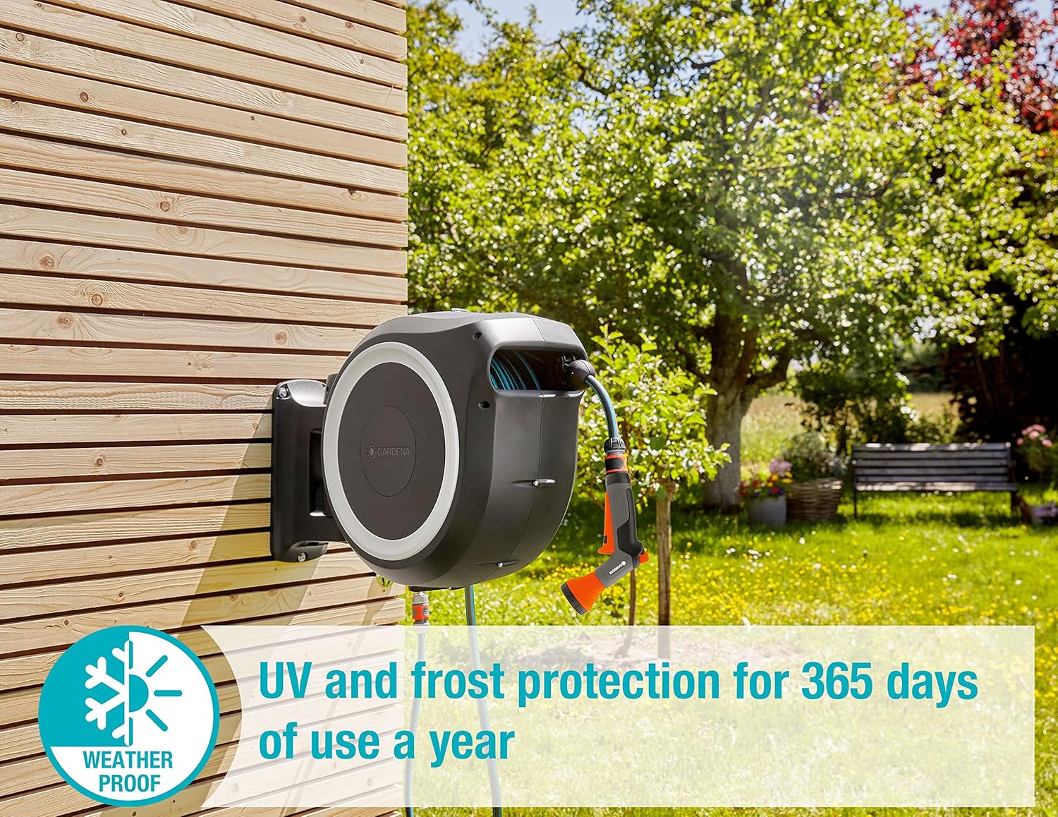 - Frostsicher: Dank innovativer Gardena-Frostschutztechnologie ist die Wand-Schlauchbox RollUp frostsicher und kann das ganze Jahr über draussen an ihrem Platz bleiben