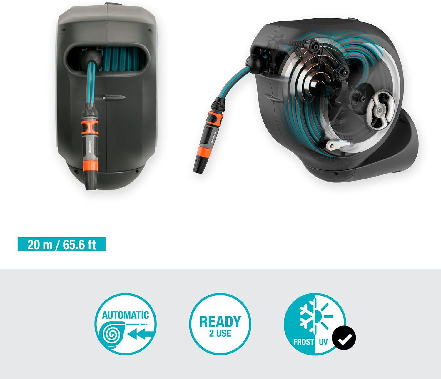 • Frostsicher: Dank innovativer Gardena-Frostschutztechnologie ist die Wand-Schlauchbox RollUp M frostsicher und kann das ganze Jahr über draussen an ihrem Platz bleiben