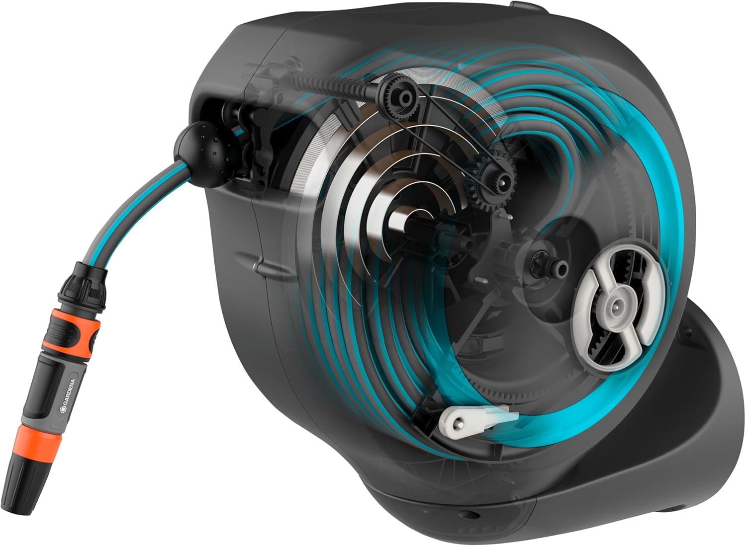 • Langlebige Aufroll-Technologie: Automatisches, sicheres und zuverlässiges Aufrollen dank Fliehkraftbremse und integrierter Schlauchführung – gleichmässiger Einzug ohne dass sich der Schlauch verknotet oder abknickt