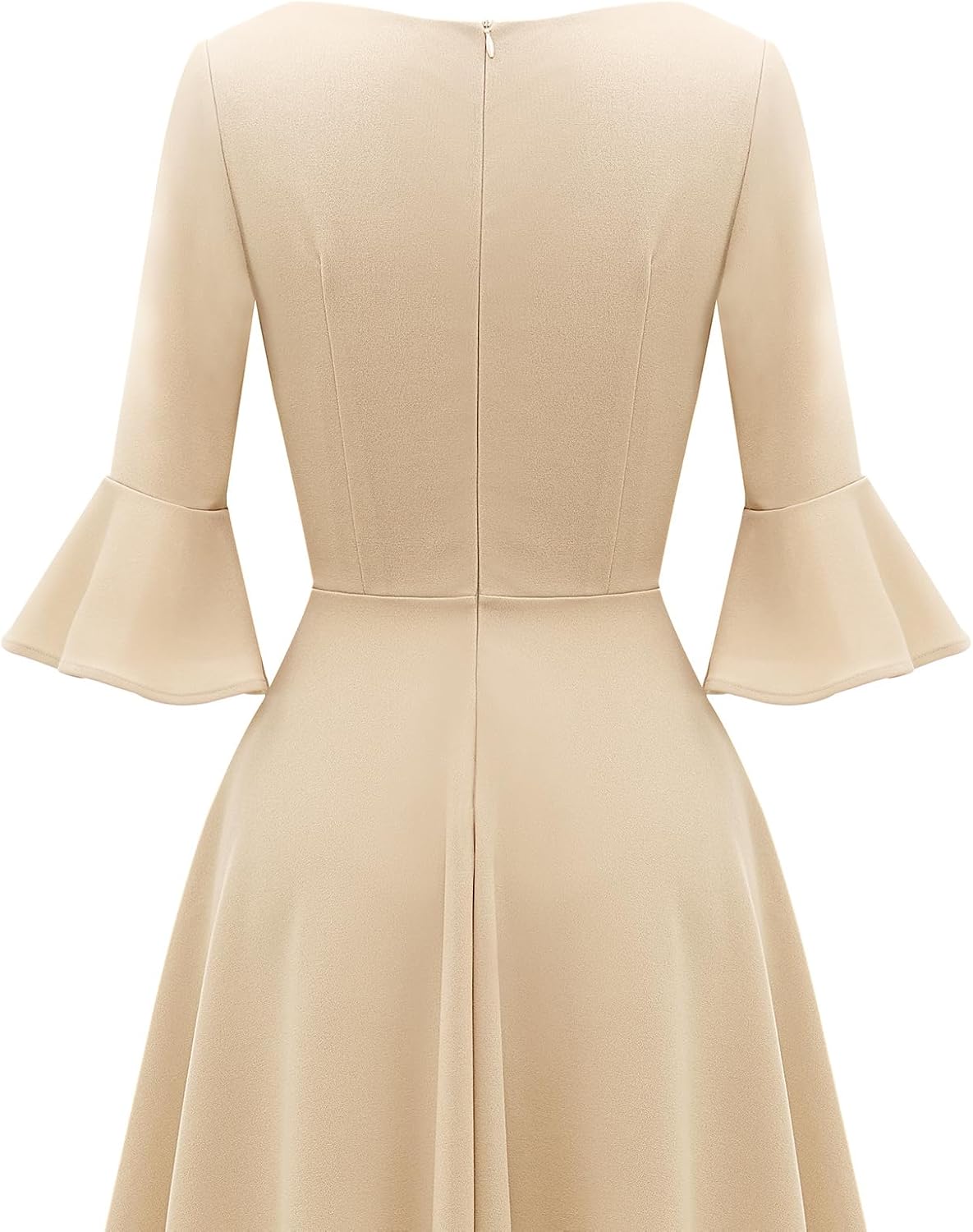 - Design: A-Linie, Rundhalsausschnitt,3/4 arm,Flare Bell Sleeve,High-low,Verdeckter Reissverschluss hinten.Geeignet für alle Frauen und Mädchen und zeigt Ihre perfekte Figur.