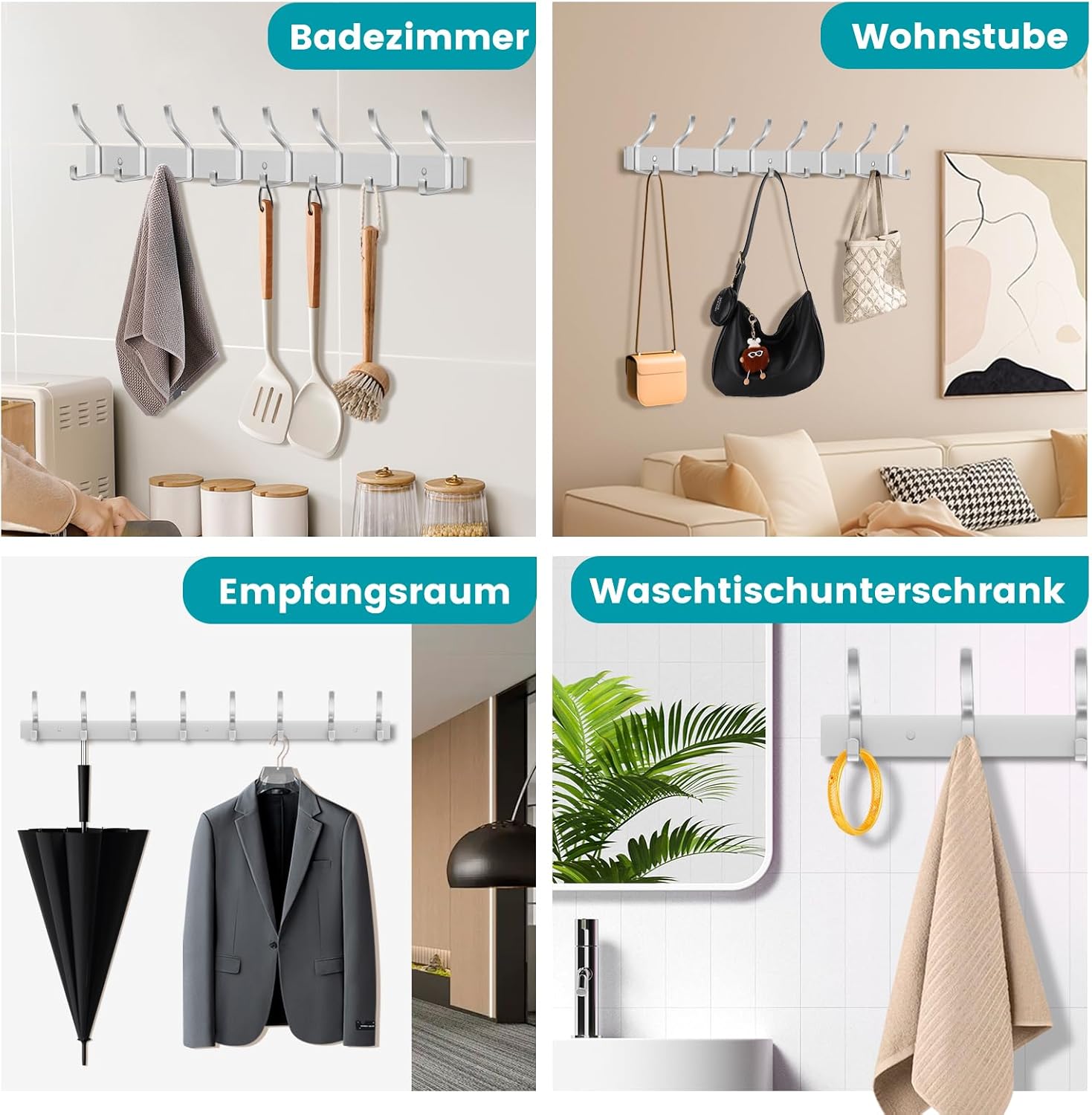 - Robust und langlebig: Der Hakenleiste garderobe ist aus hochwertigem Edelstahl gefertigt, rostet nicht und verformt sich nicht leicht, kann leicht das Gewicht von 10-30 kg aushalten, es ist das perfekte Werkzeug für die Organisation von chaotischer