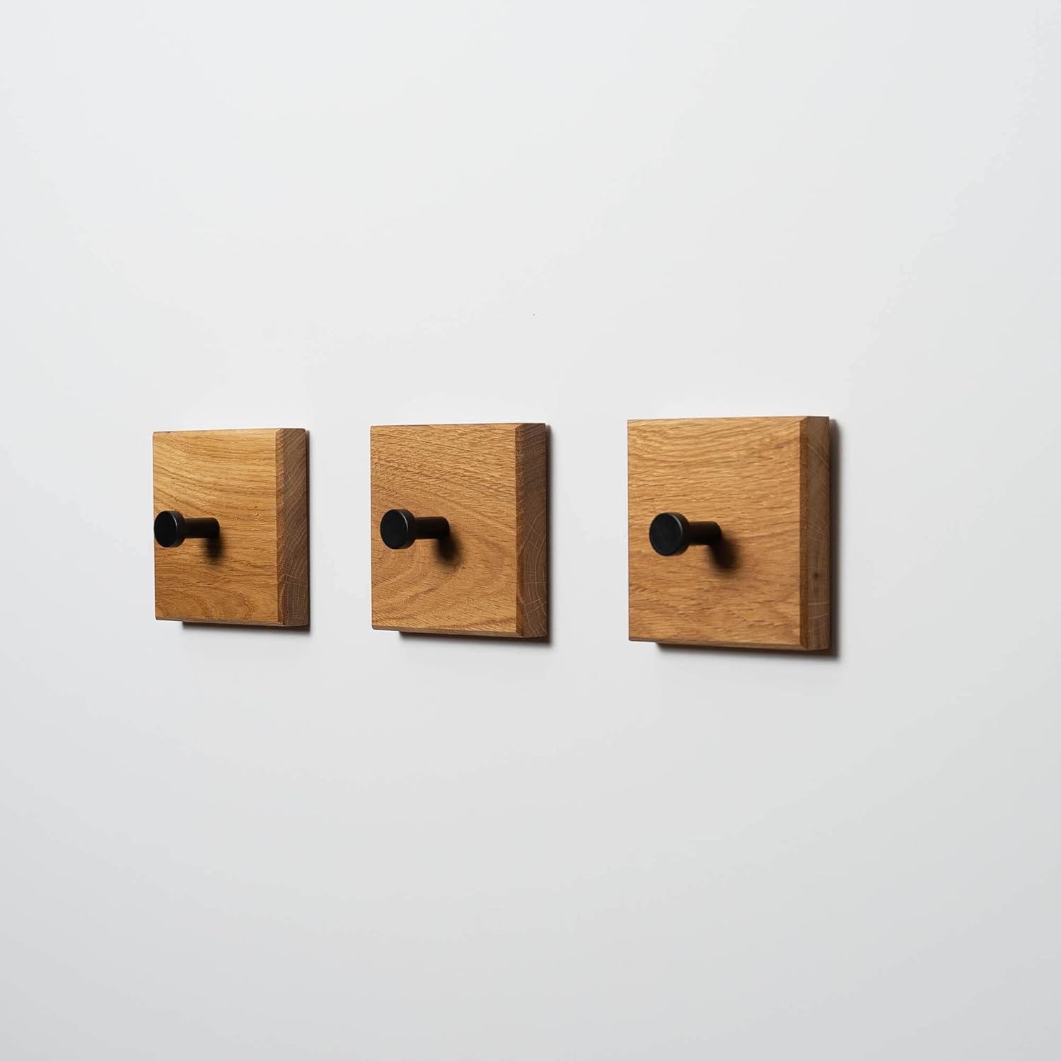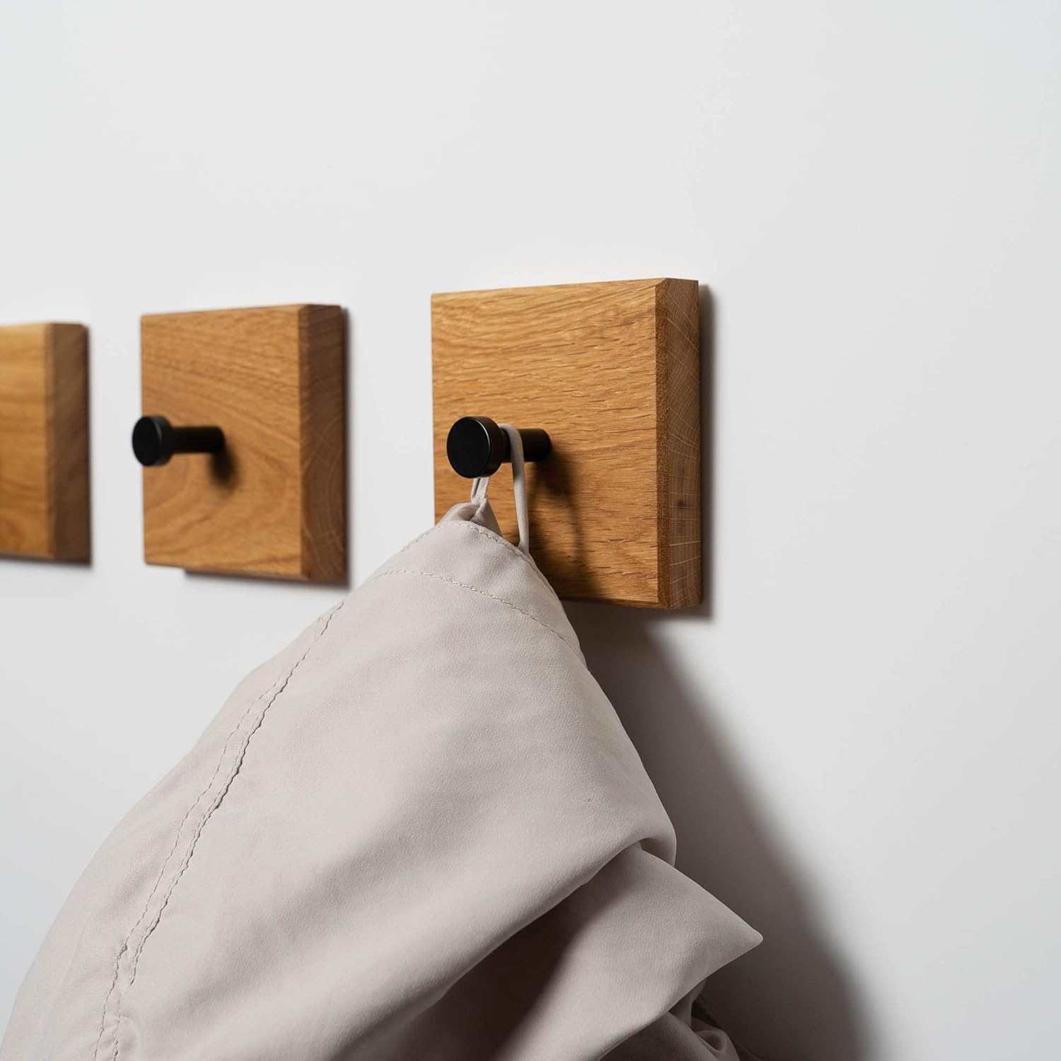 - STILVOLLE WANDDEKO - Hochwertige handgefertigte Garderoben-Haken aus Eichenholz mit den Abmessungen 9,5 x 9,5cm