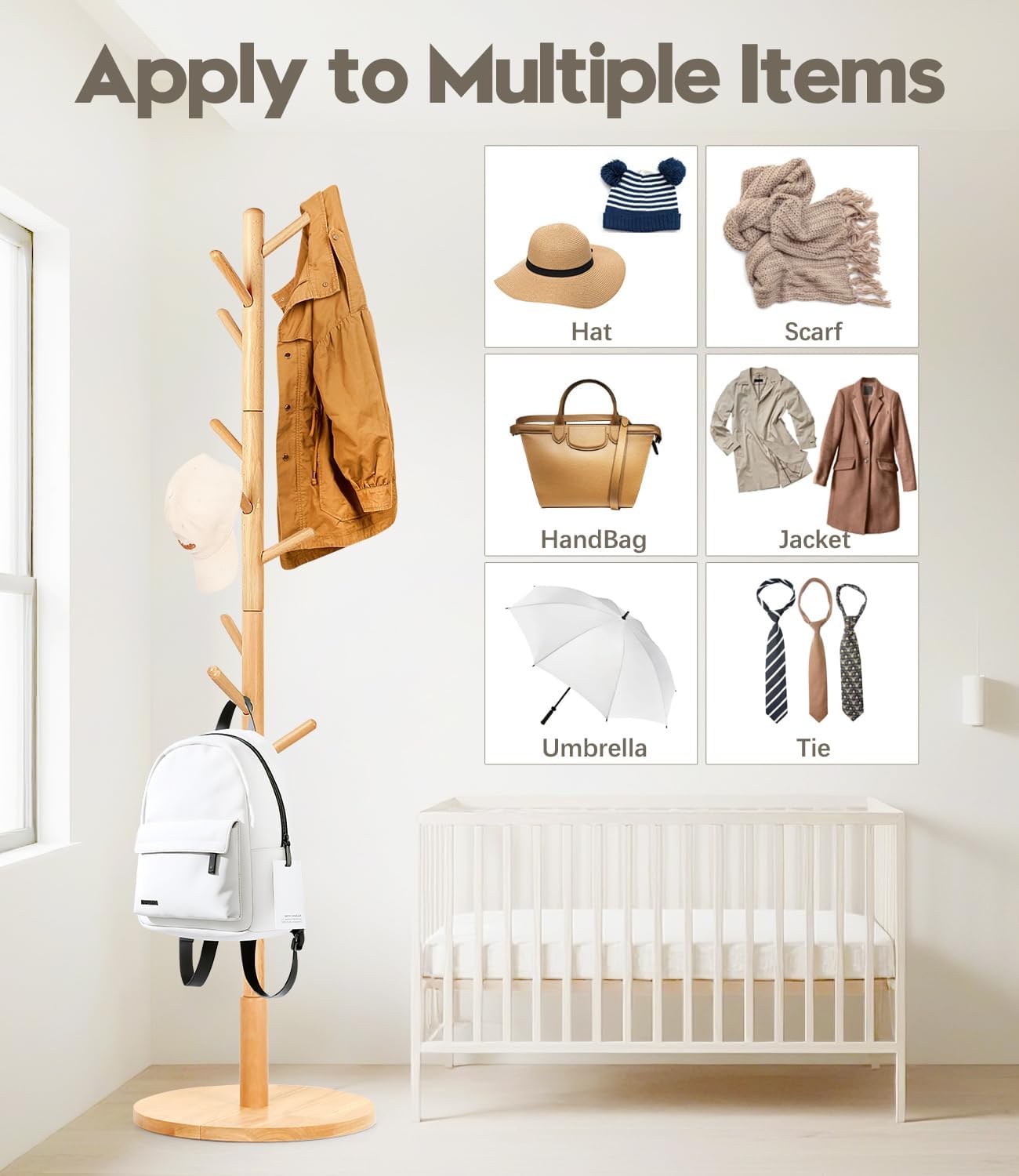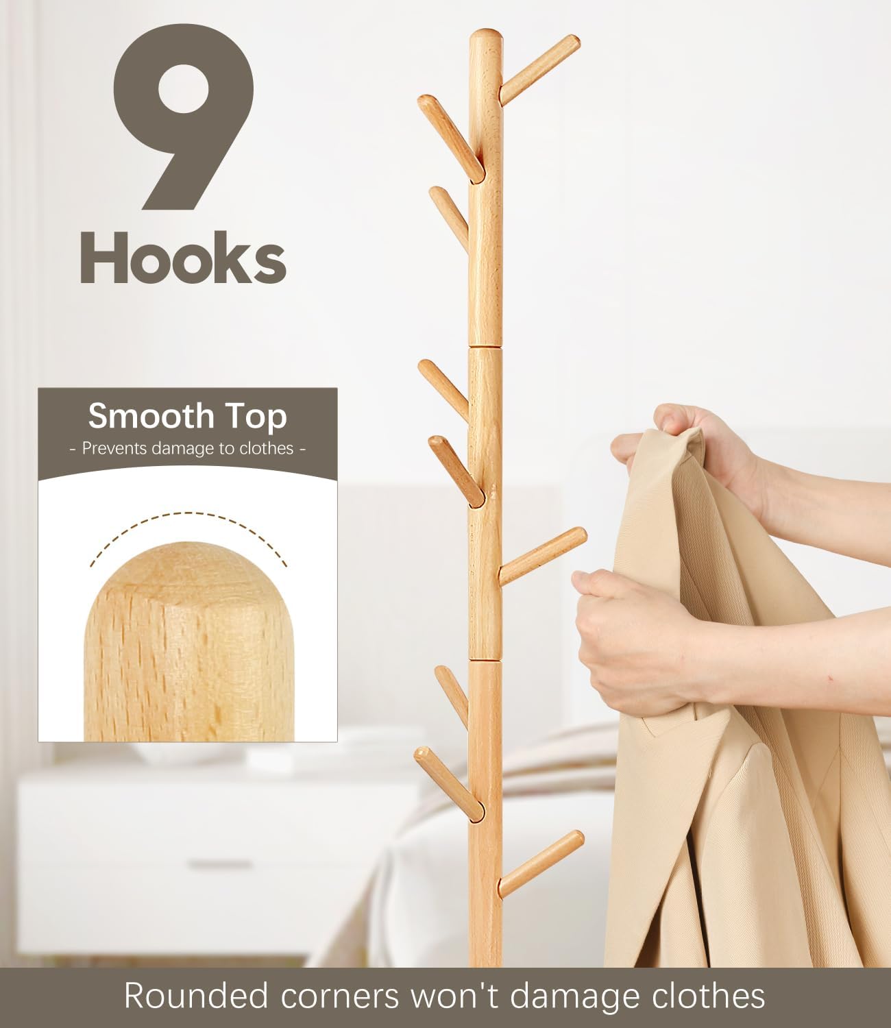 - 9 Haken für reichlich Stauraum: Mit 9 grosszügig dimensionierten Haken bietet dieses Produkt viel Platz zum Aufhängen von Kleidung, Taschen, Schals und Schirmen. Es maximiert die Speicherkapazität in einem kompakten Design