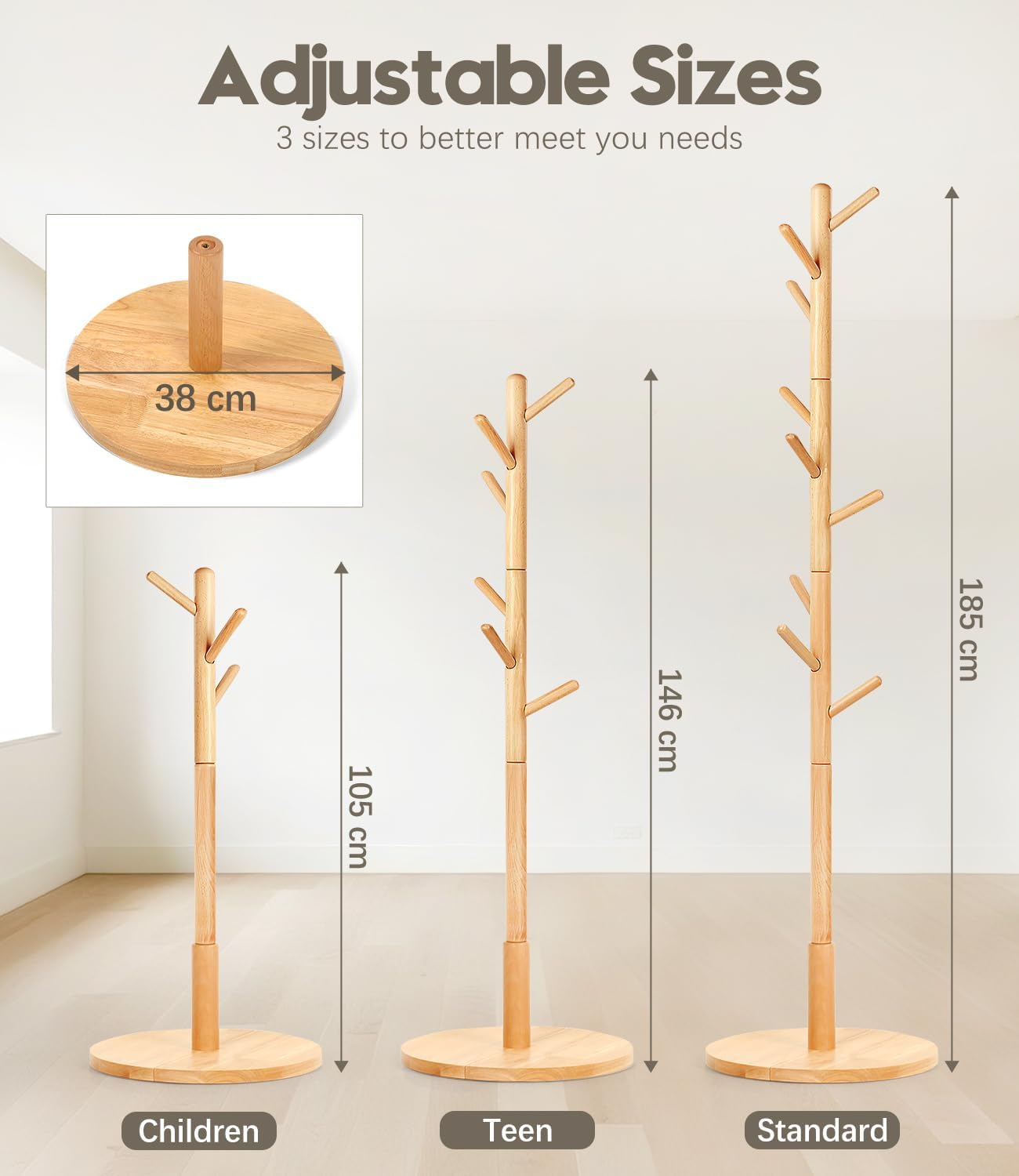 - 3-stufige Höhenverstellung für alle Altersgruppen: Mit drei einstellbaren Höhen ist dieses Garderobenständer sowohl für Kinder als auch für Erwachsene geeignet. Es ist eine kostengünstige Lösung, die mitwächst, während sich das Kind entwickelt