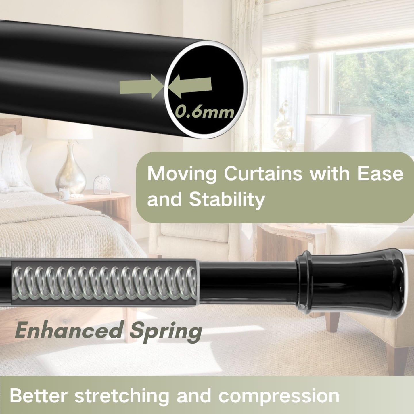 - ❤️𝐅𝐞𝐬𝐭𝐞𝐬 𝐌𝐚𝐭𝐞𝐫𝐢𝐚𝐥: Verdickte Rohrwand 0.5mm, Durchmesser 25mm. Die Gardinenstange ist durch eine Harzbeschichtung geschützt, die hart, verschleissfest und leicht zu reinigen ist. Die Tragfähigkeit beträgt