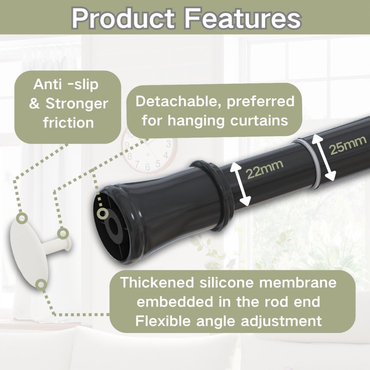 - ❤️ 𝐄𝐢𝐧𝐳𝐢𝐠𝐚𝐫𝐭𝐢𝐠𝐞𝐬 𝐃𝐞𝐬𝐢𝐠𝐧: Das Stangenende ist mit einer verdickten Silikonmembran zur flexiblen Winkeleinstellung eingebettet, die herkömmlichen Stangenenden überlegen ist. Es hat stärkere