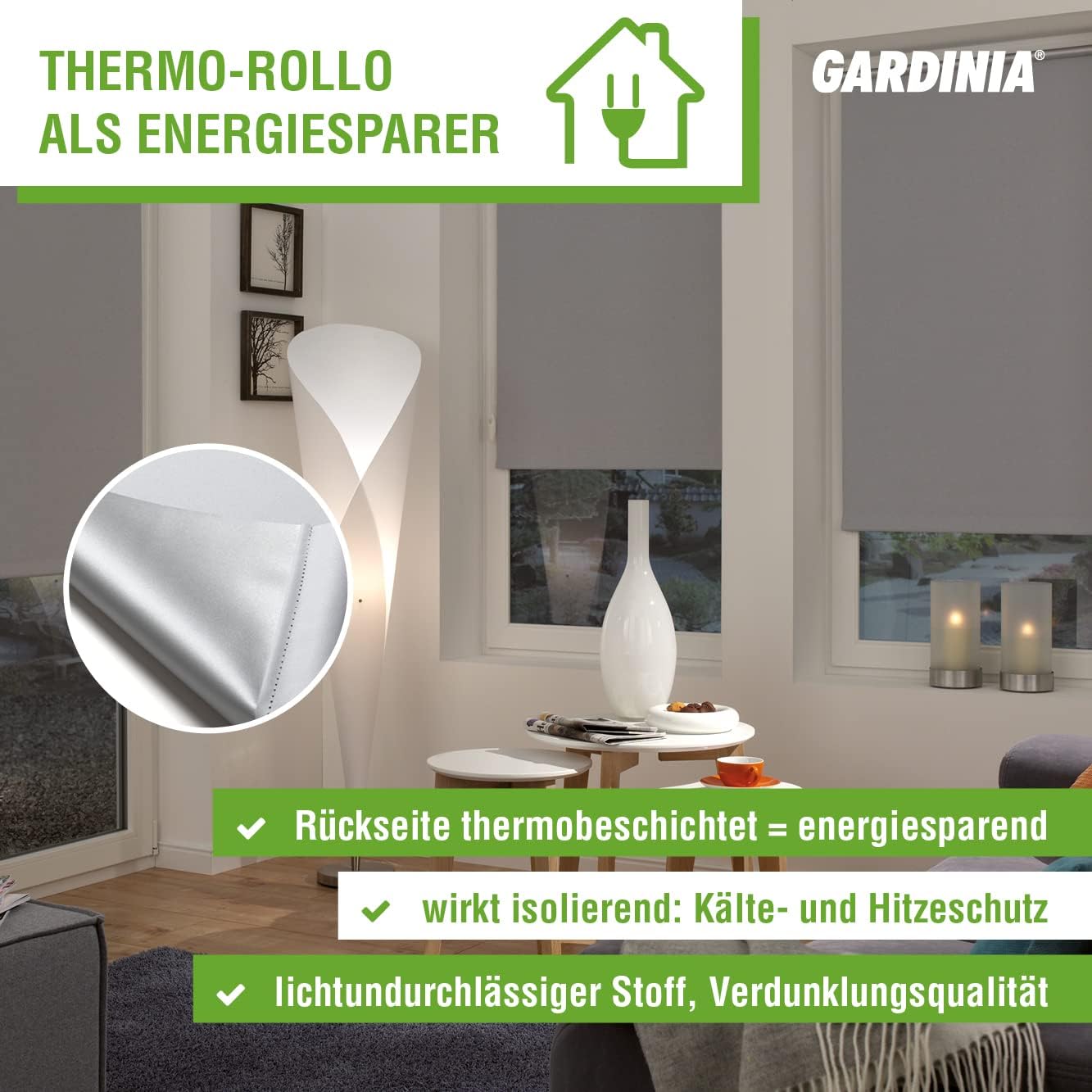 - Lichtundurchlässiges Rollo für alle gängigen Fenster, Stufenloses Verstellen mittels Kettenzug, Höchste Lichtreflektion dank Thermo-Rückseite, Ideale Speicherung von Wärme im Winter und Kühle im Sommer, Montage ohne Bohren und Werkzeug