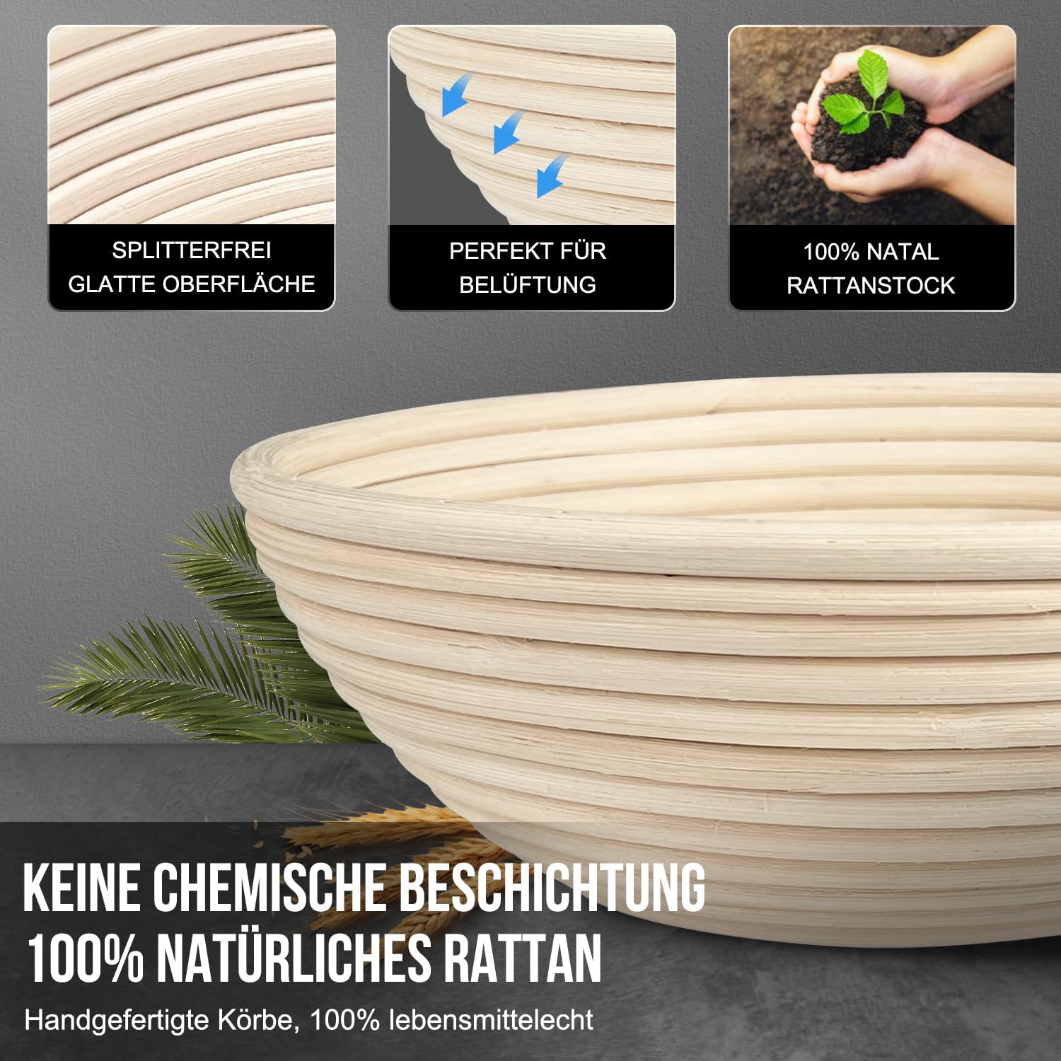 - 【STARKES STRUKTURDESIGN, LANGLEBIG! 】 Qualitäts garantie für unseren gärkorb durch hochwertiges Rattan. Glatte Oberfläche und kein Splitter, Sie müssen sich keine Sorgen machen, dass Sie sich die Hände verletzen. walfos gärkörbchen werden mit