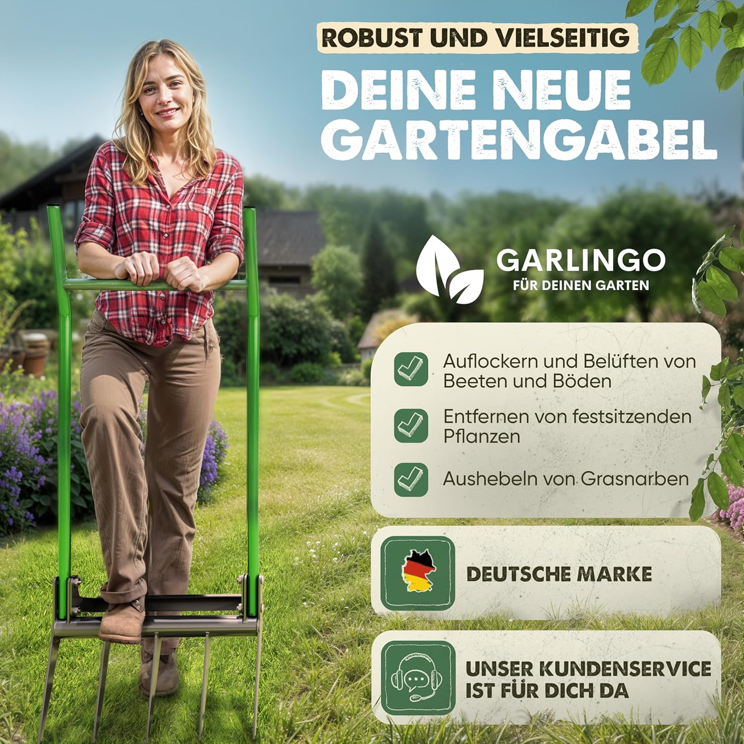 • ✅ 𝗗𝗘𝗥 𝗣𝗘𝗥𝗙𝗘𝗞𝗧𝗘 𝗚𝗔𝗥𝗧𝗘𝗡 - Lockern Sie mit der Doppelgrabegabel effizient den Boden auf, um die Bodenfruchtbarkeit und - fauna sowie den Humusaufbau zu erhöhen. Ideal für Gemüse- und Blumengärten.
