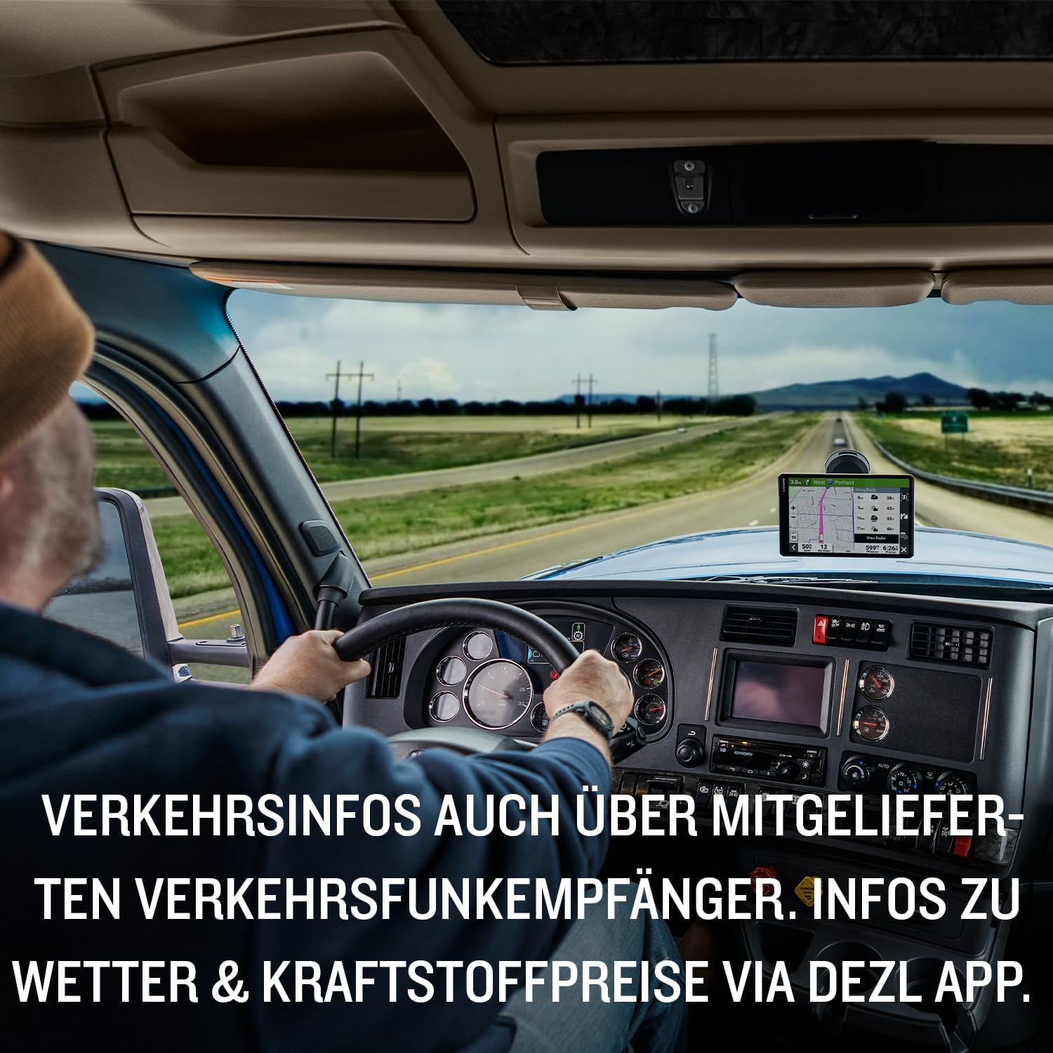 • LIVE-INFORMATIONEN: Nach dem Koppeln des LKW Navis mit der dēzl App auf Ihrem kompatbilen Smartphone erhalten Sie Live-Informationen zu Verkehr, Wetter und Kraftstoffpreisen. Das dēzl LGV 610 MT-D empfängt Verkehrsinfos auch ohne die dēzl App