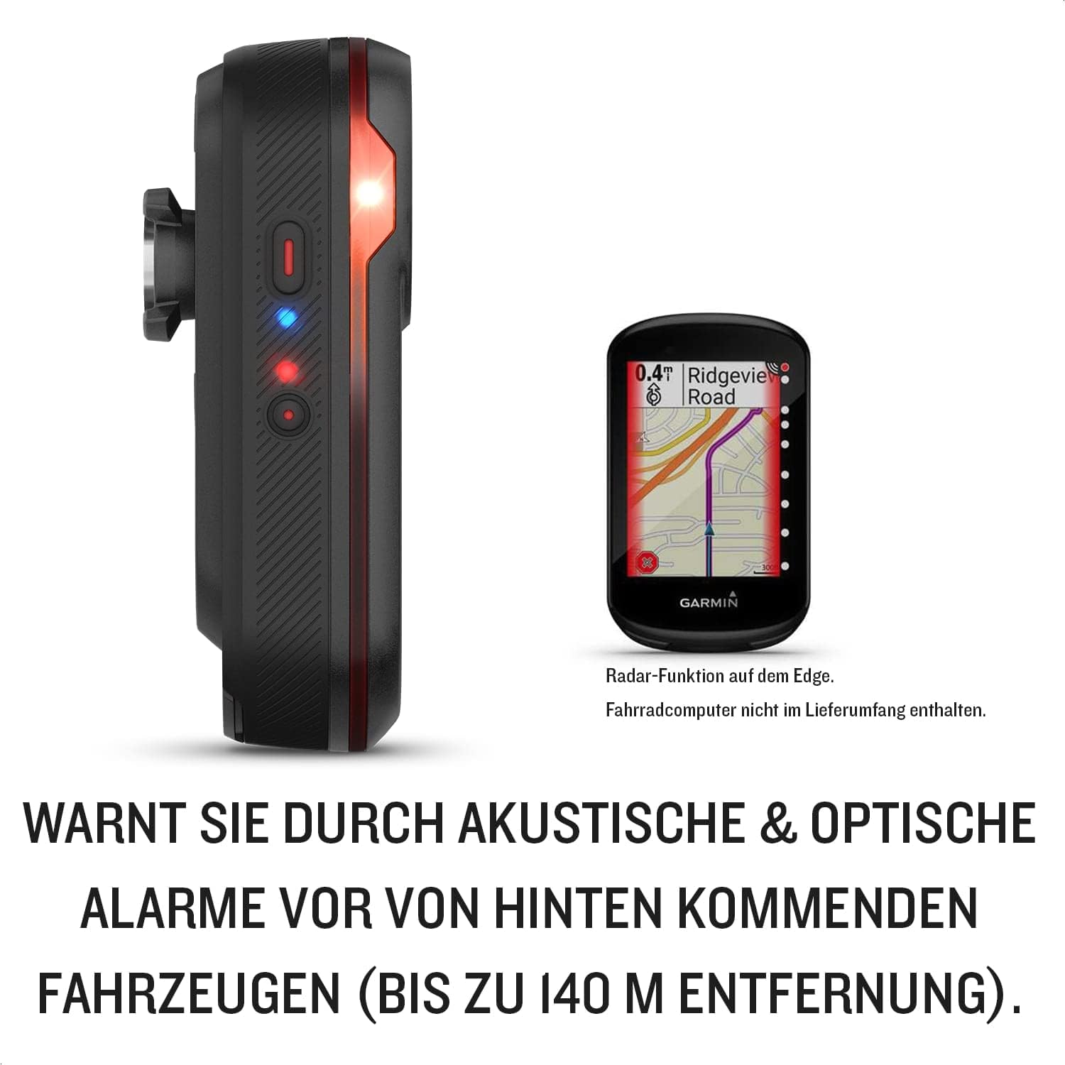 • RÜCKLICHT UND RADAR IN EINEM: Das 5 Lumen starke Rücklicht mit integriertem Radar warnt Sie durch akustische und optische Alarme vor von hinten kommenden Fahrzeugen aus einer Distanz von bis zu 140m. Die Anzeige erfolgt auf kompatiblen