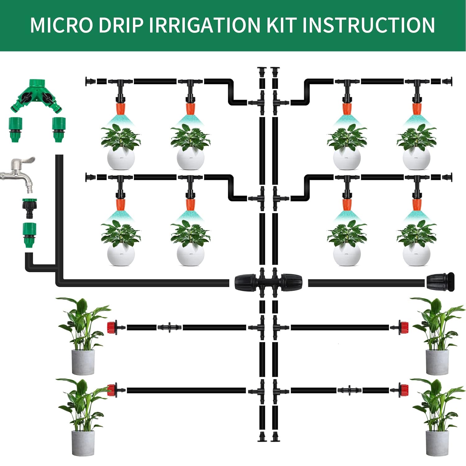 - 💧【Installationstipps】Die Wassermenge aus dem Tropfer wird durch den Wasserdruck und andere Faktoren beeinflusst. Wenn der Wasserdruck niedrig ist, ist die Wasserleistung am Ende schlecht. Es wird empfohlen, mehrere Rohre gleichzeitig zu verwenden.