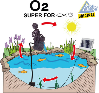 • Hat eine tolle Optik und ist sehr nützlich zugleich: bringt in Umlauf das Wasser in Ihrem Teich und das reichert mit Sauerstoff, optimal für Fische und Pflanzen in Ihrem Teich