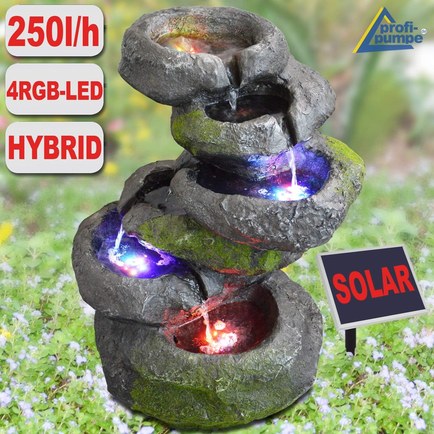 - Hybrid-Gartenbrunnen "FELS-KASKADE GESCHWUNGEN" mit 3 verschiedenen BETRIEBSARTEN und LED-Farbwechsel-Beleuchtung für den Innen- und Aussenbereich