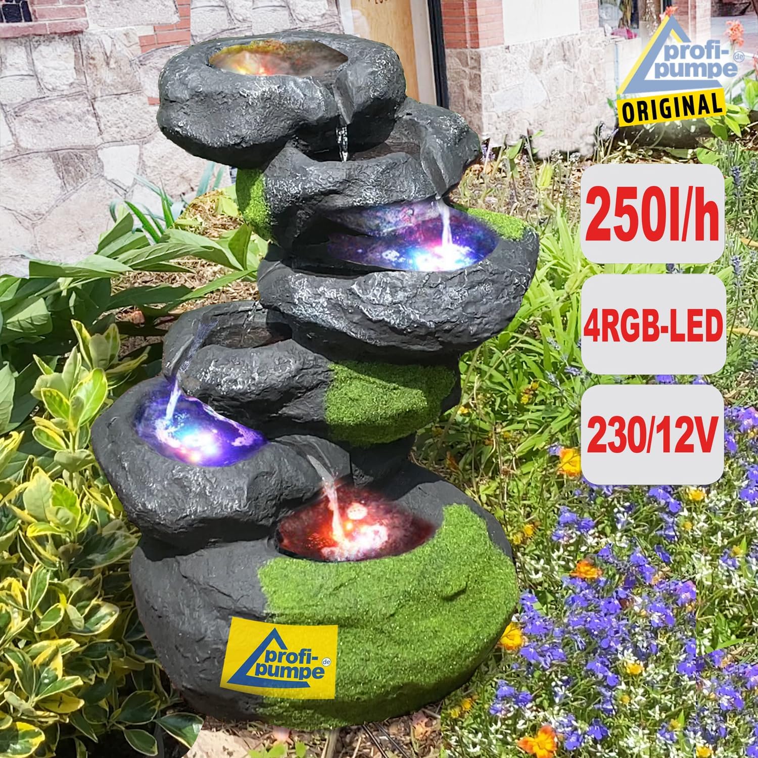 - ⭐⭐⭐⭐⭐ 12/ 230V-Gartenbrunnen "FELS-KASKADE GESCHWUNGEN" mit LED-Farbwechsel-Beleuchtung für den Innen- und Aussenbereich