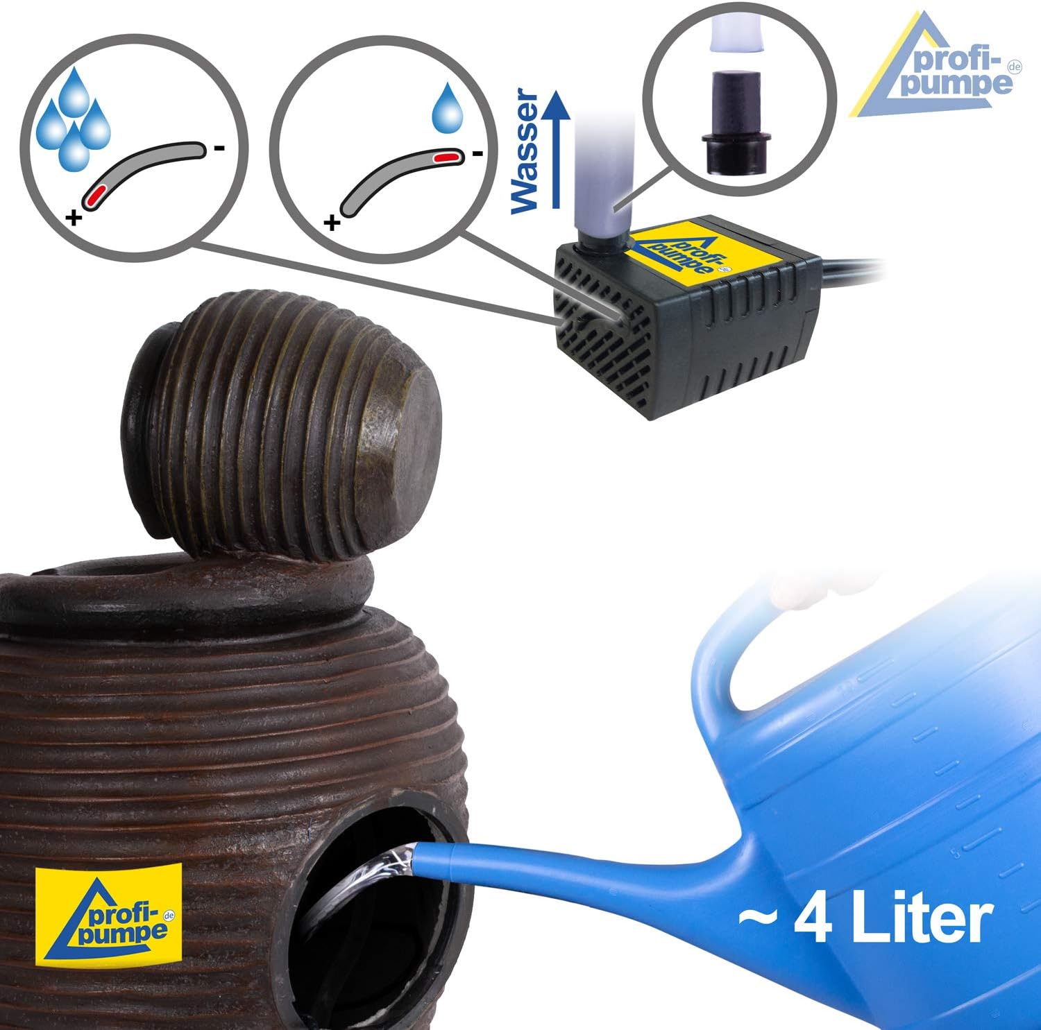 - Mit 230V/12V-Anschluss / Inkl. 3,6 Watt Pumpe / LED-Ring