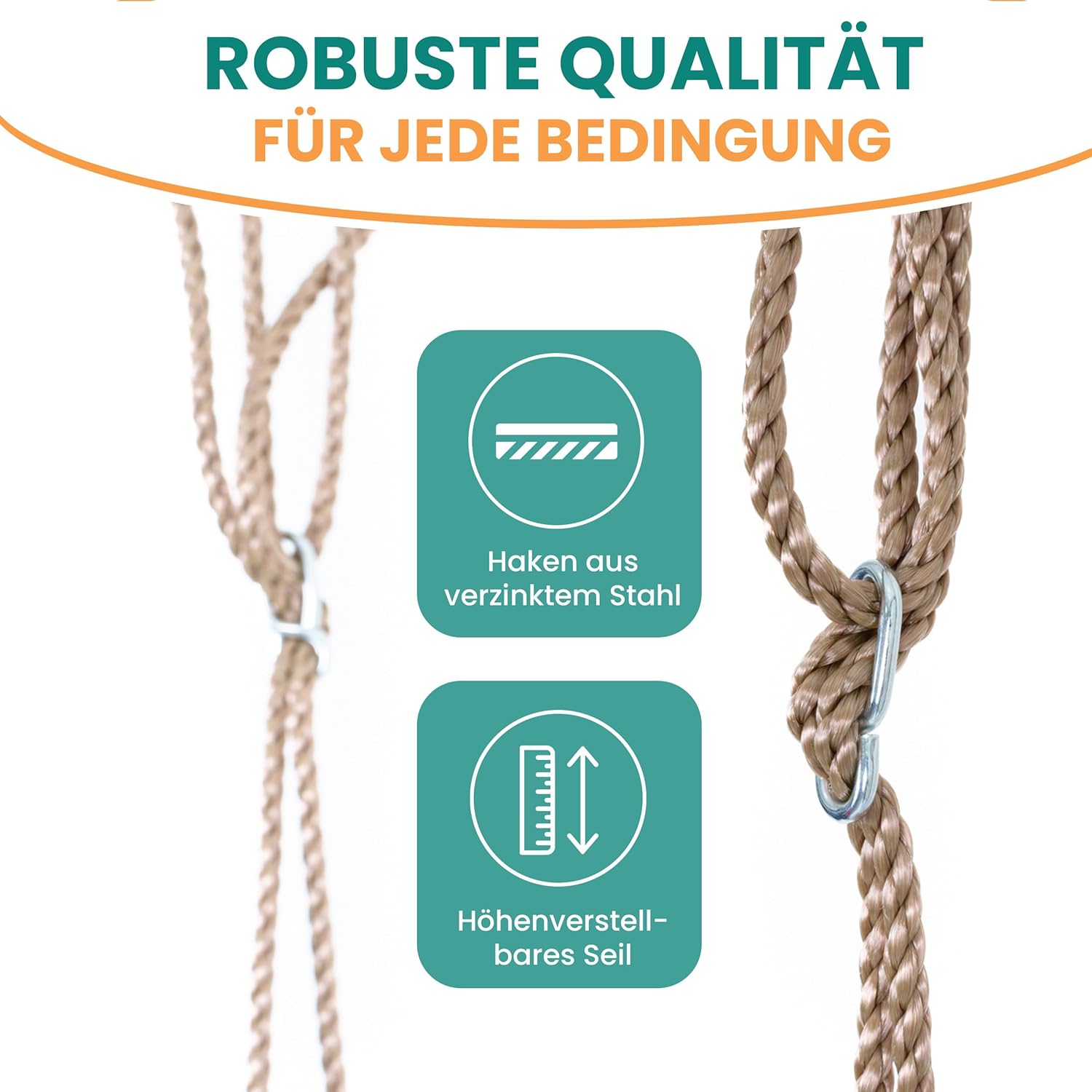 - Seillänge verstellbar für eine Schaukel-Höhe von 1,80 m bis 2,50 m