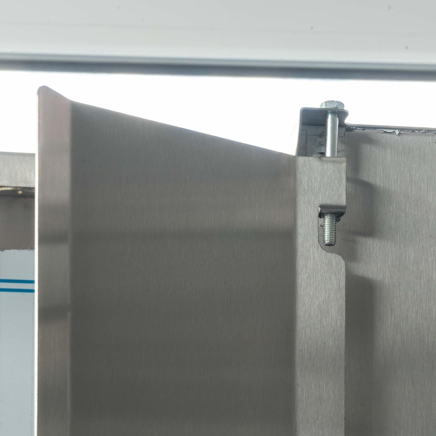 - Hergestellt aus hochwertigem Edelstahl sind diese Flügeltüren langlebig und leicht zu reinigen, was sie zu einer idealen Wahl für den professionellen Einsatz in Restaurants, Imbissen und anderen gastronomischen Betrieben macht.
