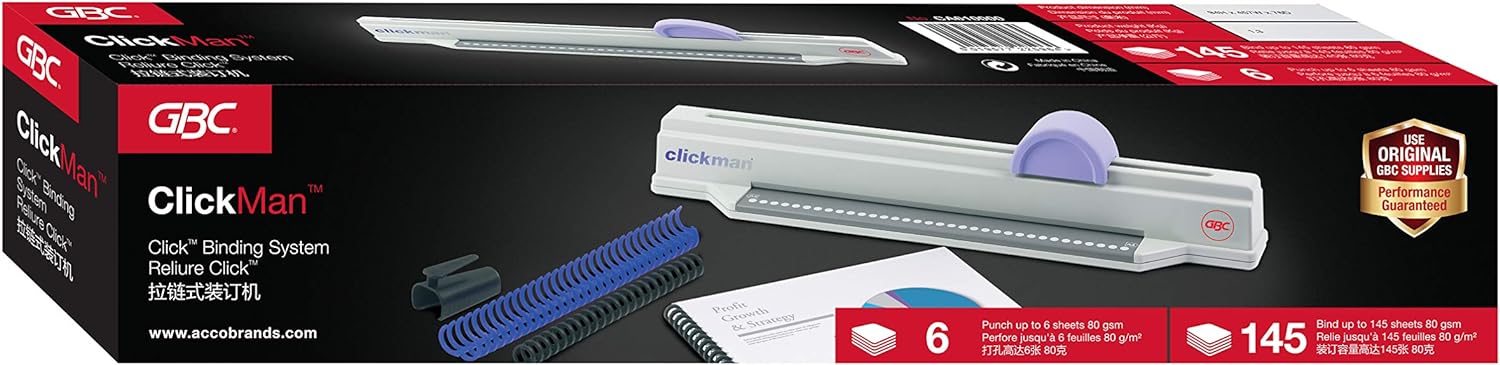 - Lieferumfang: GBC Clickbinder Bindegerät/Stanzgerät (6 x 80 g/m² DIN A4)