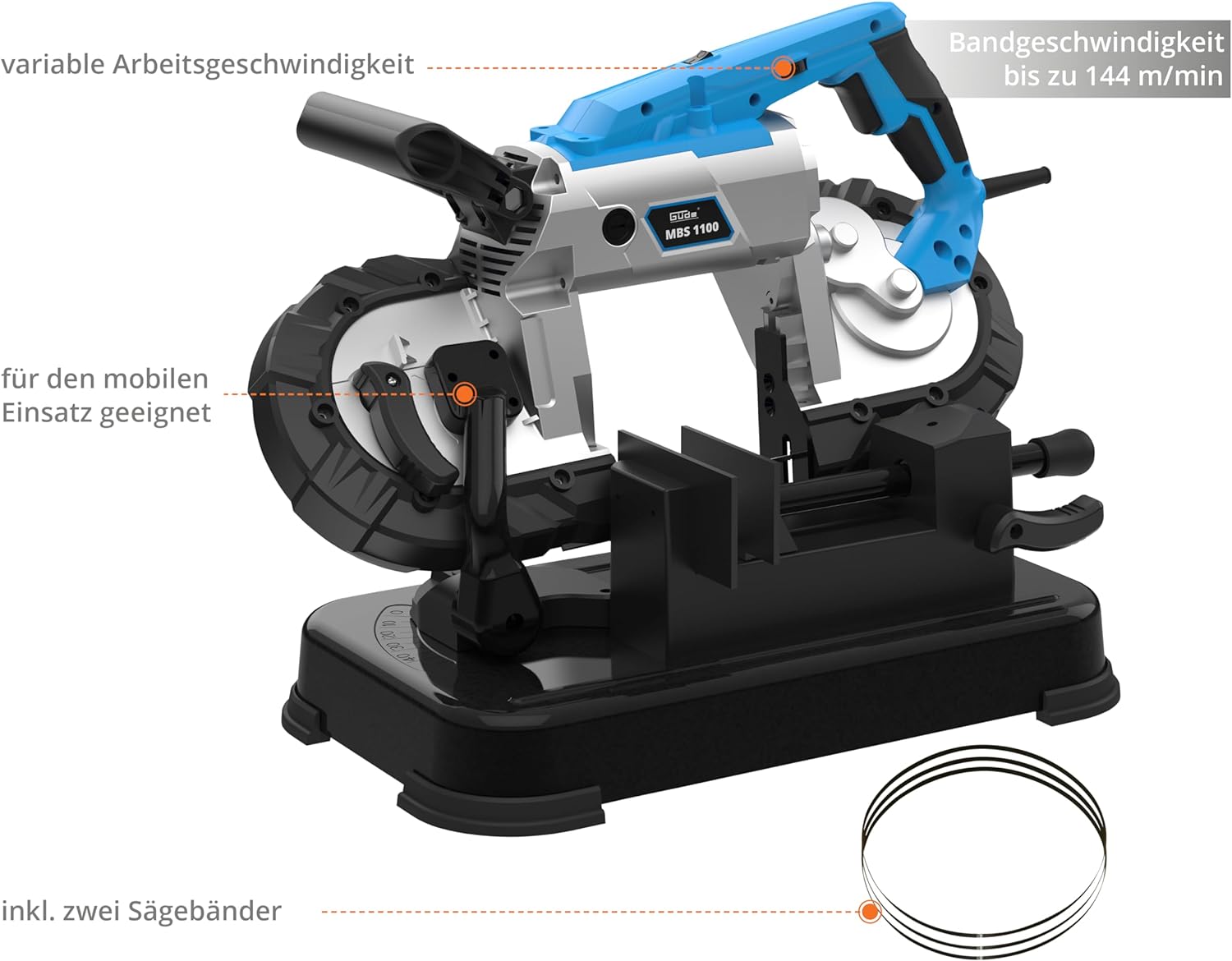 - FLEXIBILITÄT: Die Güde Metallbandsäge MBS 1100, abnehmbar für mobile Einsätze, ermöglicht präzise Schnitte mit einstellbaren Schnittwinkeln von 90° oder 40° – optimal für jede Baustelle.