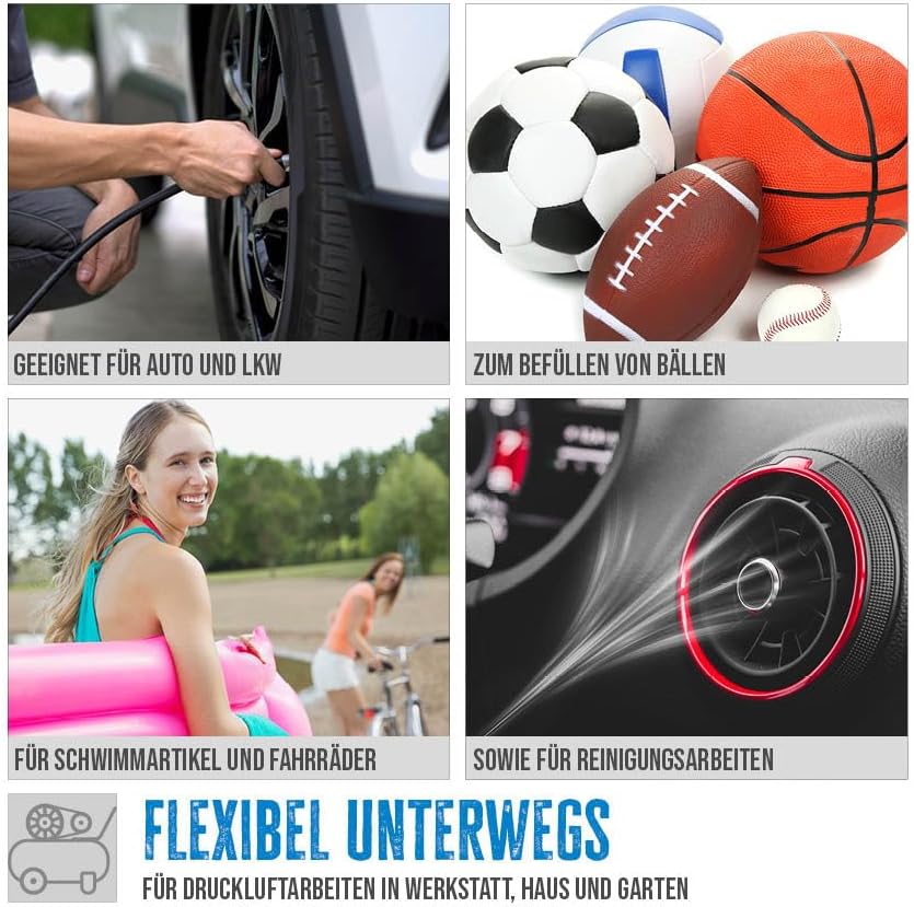 - UMFANGREICHES ZUBEHÖR: Von Messing-Fahrradventil-Adaptern und Ballfüllnadeln bis zu speziellen Kunststoffdüsen für Schlauchboote und Luftmatratzen – dieses Set stellt sicher, dass Sie für jede Aufgabe gerüstet sind.