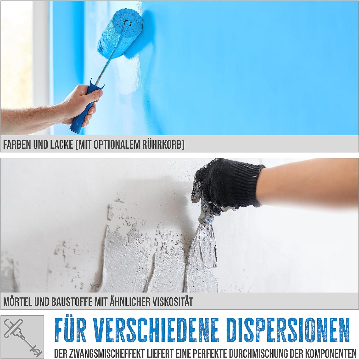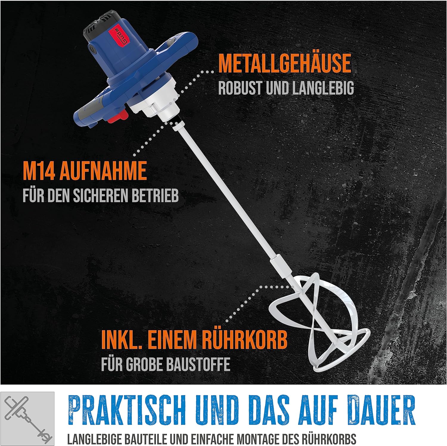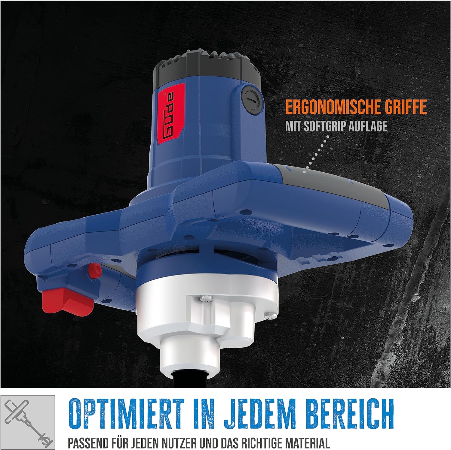 - Leistungsstarker Mörtelrührer für das Aufrühren und Anmischen von pulverförmigen Bauwerkstoffen.