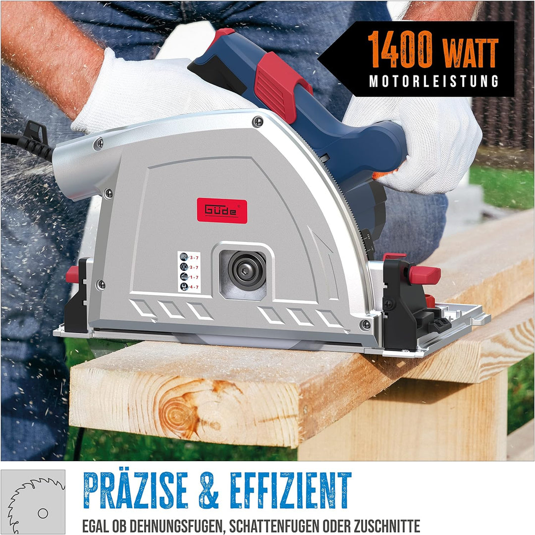 Güde 58232 Tauchkreissäge TS 57-1400 KE Set (1400 W, Sägeblatt-Ø 165 mm, Paralleler Tauchmechanismus