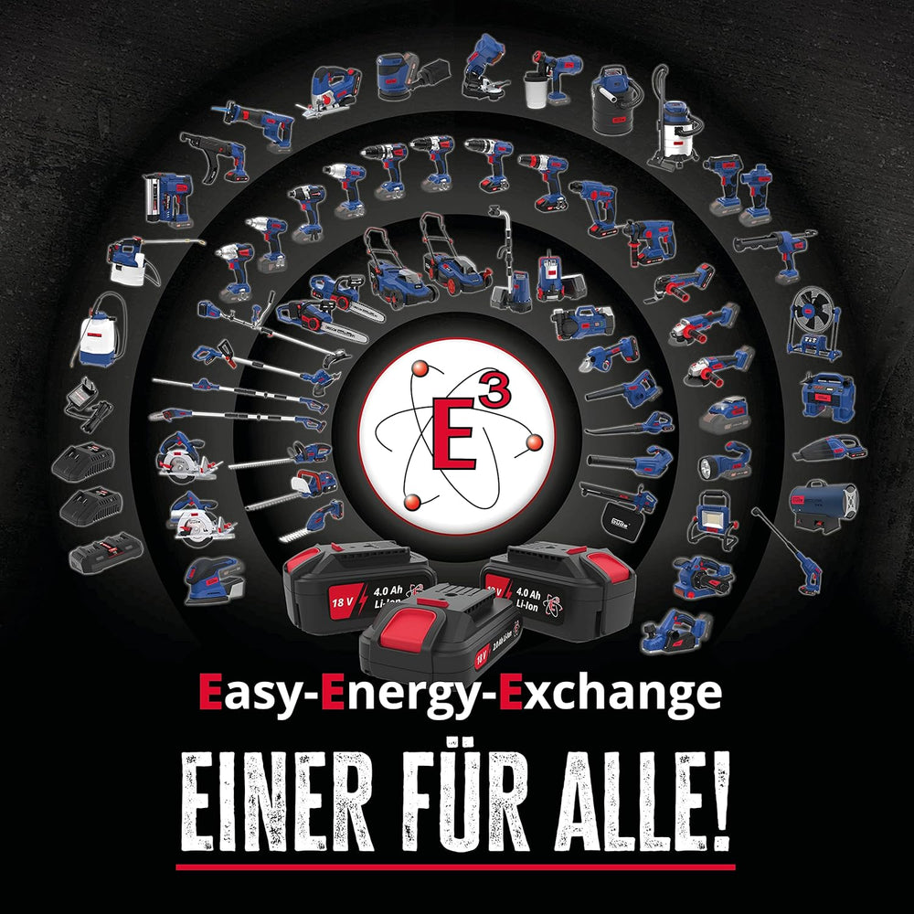 - ✔ Der Akku Laubbläser LB 18-201-05 ist Teil der grossen 18 V Easy-Energy-Exchange (E³) Akkuserie.