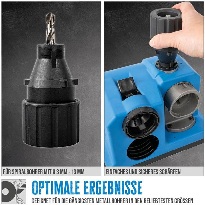 - EFFIZIENZ: Geeignet für das Trockenschleifen, bietet das Gerät eine schnelle und effiziente Möglichkeit, die gängigsten Metallbohrer nachzuschärfen.