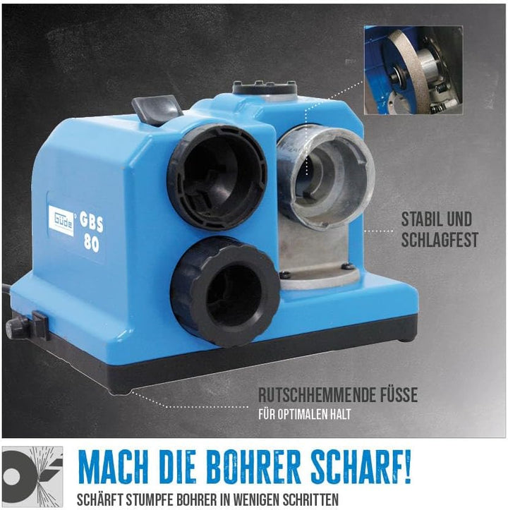 - VIELSEITIGKEIT: Das Güde Bohrerschärfgerät GBS 80 eignet sich für diverse Bohrerarten wie HSS E-, HSS-, CrV- oder WS-Spiralbohrer von 3,0 - 13,0 mm Durchmesser.