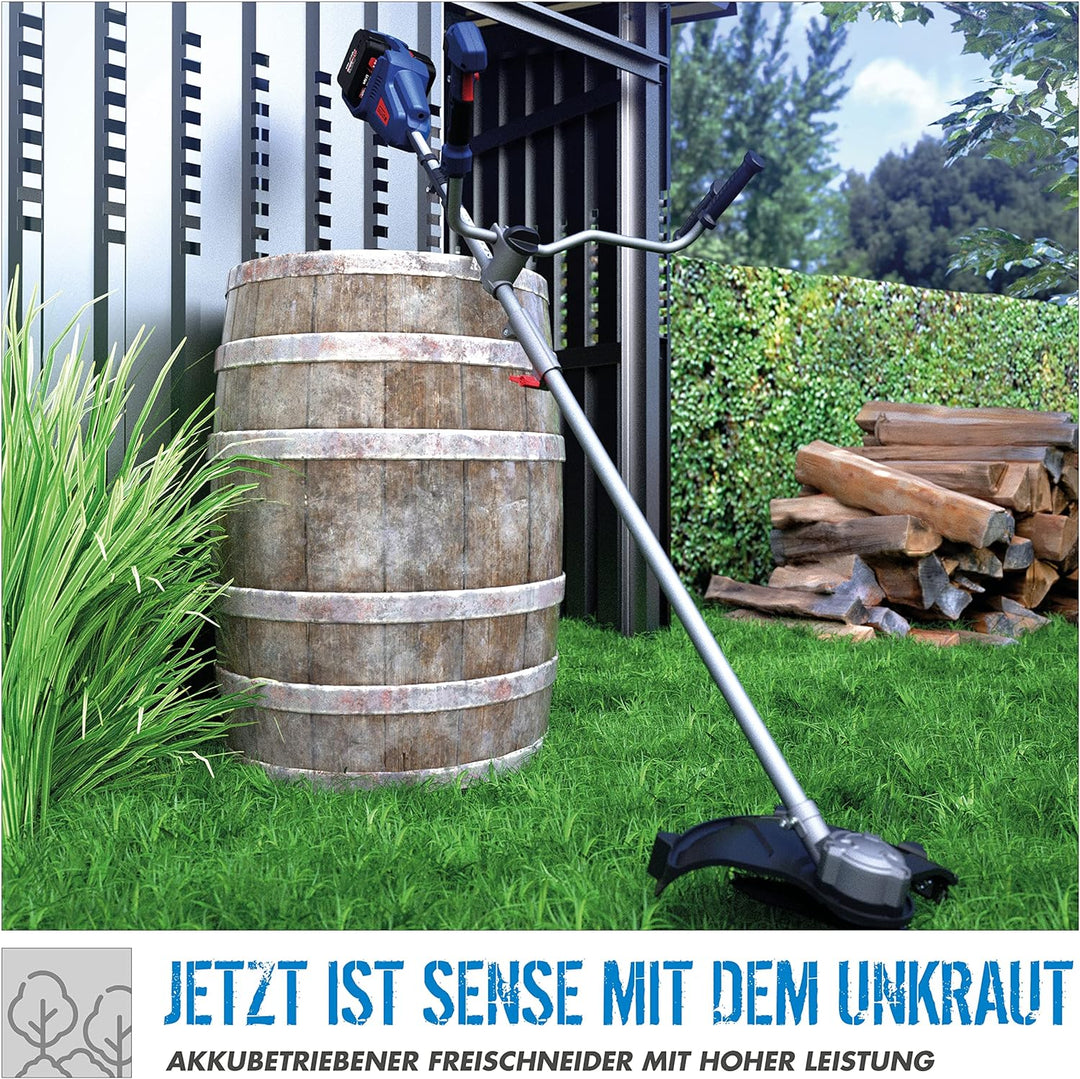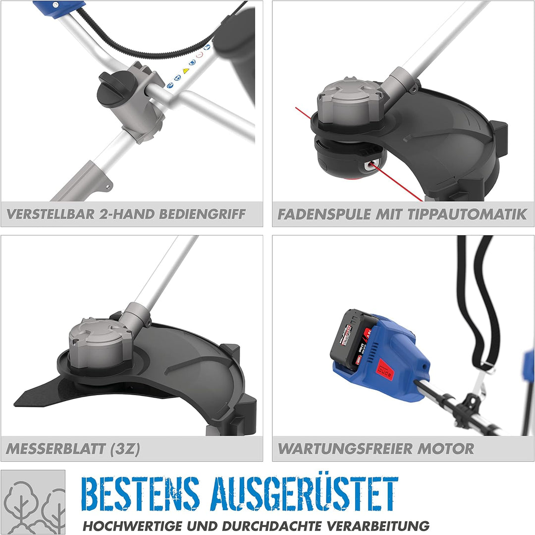 • LEISTUNG - Mit einer Schnittbreite von 255 mm beim Messerblatt & 350 mm bei der Fadenspule sind Sie bestens gerüstet für das Kürzen von Gestrüpp & hohem Gras, wobei der wartungsfreie & bürstenlose Motor für mehr Leistung und längere Laufzeiten