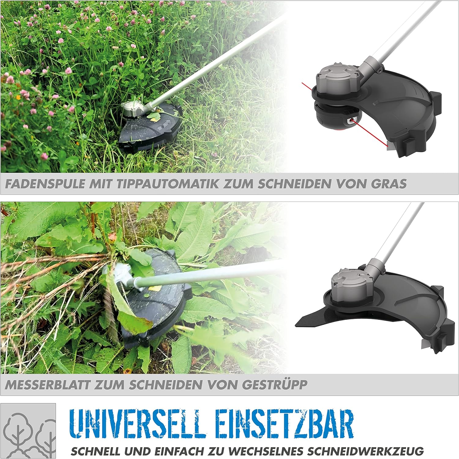 • ANWENDUNG - Die zwei verschiedenen Aufsätze lassen sich schnell & problemlos wechseln. Im Handumdrehen verwandeln Sie Ihren Freischneider in einen Rasentrimmer mit Tippautomatik. Die Rechtslauffunktion erleichtert das Lösen von Blockaden am Schneidkopf.