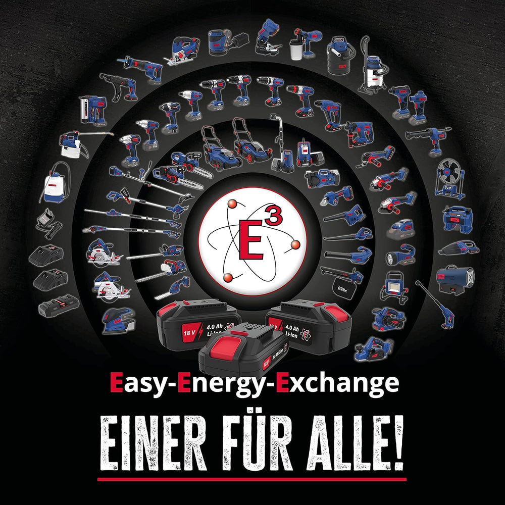 - ERWEITERBARES ZUBEHÖR: Ergänzen Sie Ihr Gerät mit optionalen Akkupacks (AP 18-30, AP 18-40) und Ladegeräten (LG 18-23, LG 18-30, LG 2-18-30) aus der 18V E³ Akkusystem-Gruppe für längere Laufzeiten und mehr Leistung.