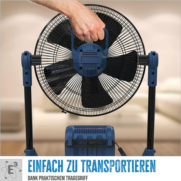 - DUALER BETRIEBSMODUS: Der Akku Ventilator kann sowohl mit dem mitgelieferten 2,0 Ah Akkupack als auch mit dem 230V Netzkabel betrieben werden – für maximale Flexibilität und Mobilität.
