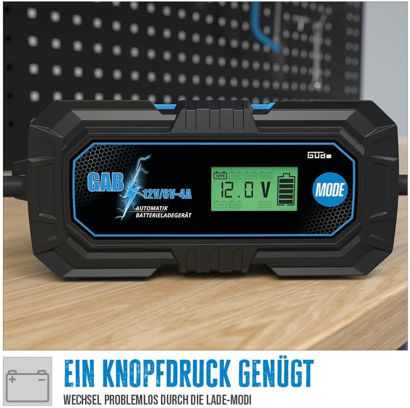 - INNOVATIVE TECHNOLOGIE: Der Güde Automatik Batterieladegerät GAB 12V/6V-4A nutzt Inverter-Technologie und prozessorgesteuerte intelligente Ladetechnologie für effiziente und batterieschonende Energieversorgung