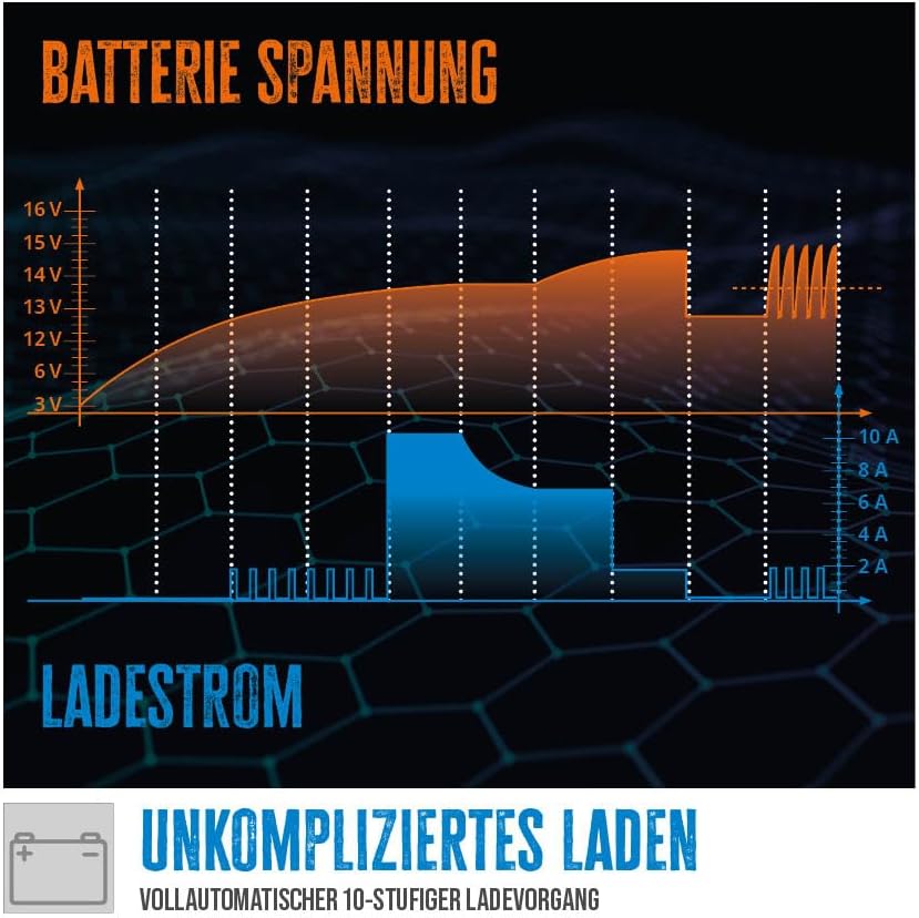 - RETTUNGSFUNKTION: Besitzt eine spezielle Rettungsfunktion für tiefentladene Batterien, durch die die Möglichkeit besteht diese ggf; zu retten, wodurch die Lebensdauer Ihrer Batterie verlängert wird