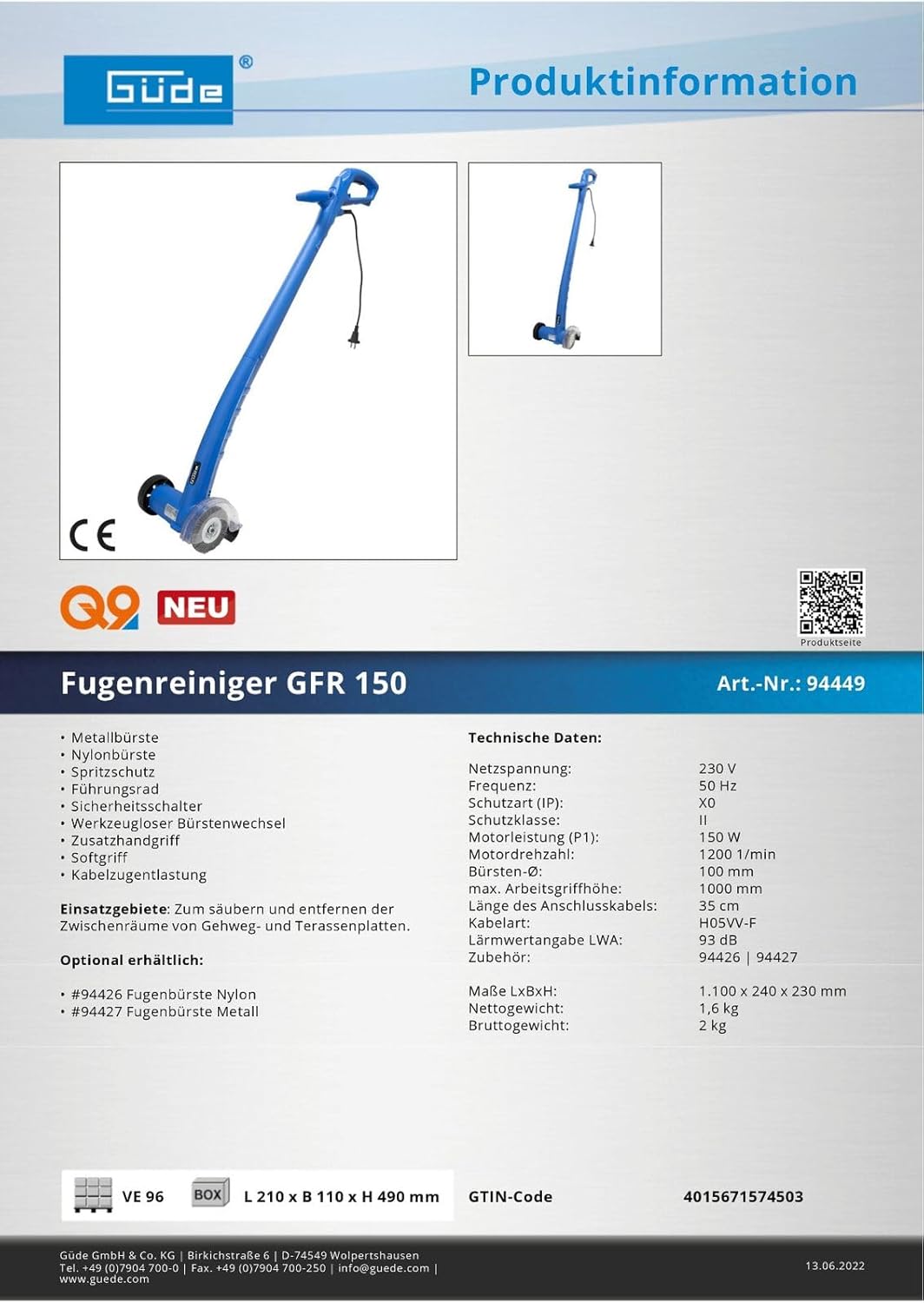 - Elektrische Fugenbürste GFR150 150 W 93 dB Fugenreiniger Fugenkratzer Unkrautentferner Moosentferner Unkraut schaber stecher bürste