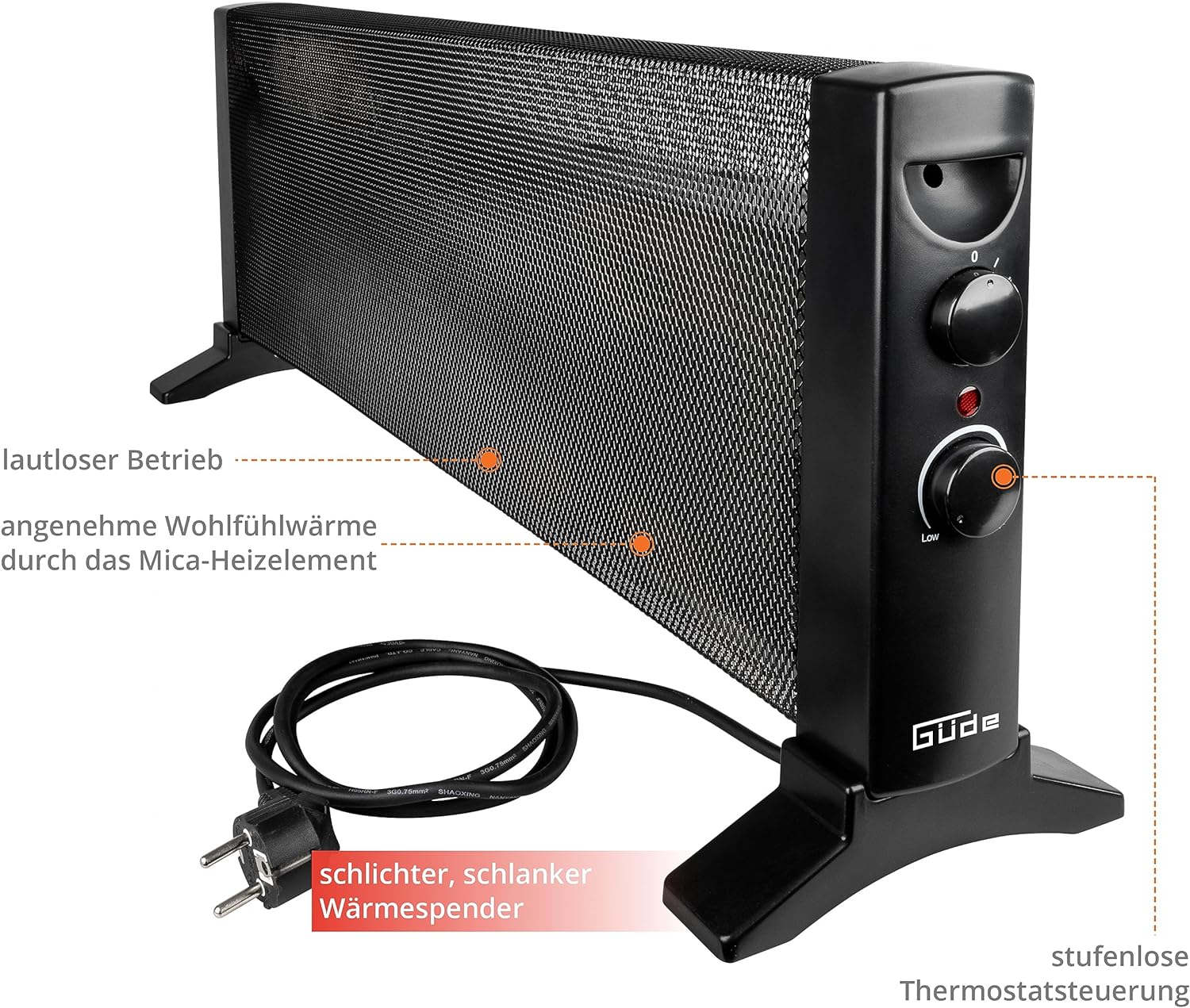 Güde Konvektionsheizgerät GKH 1200 Mica (1200 W Heizleistung, 2 Heizstufen (600/1200W), stufenloser