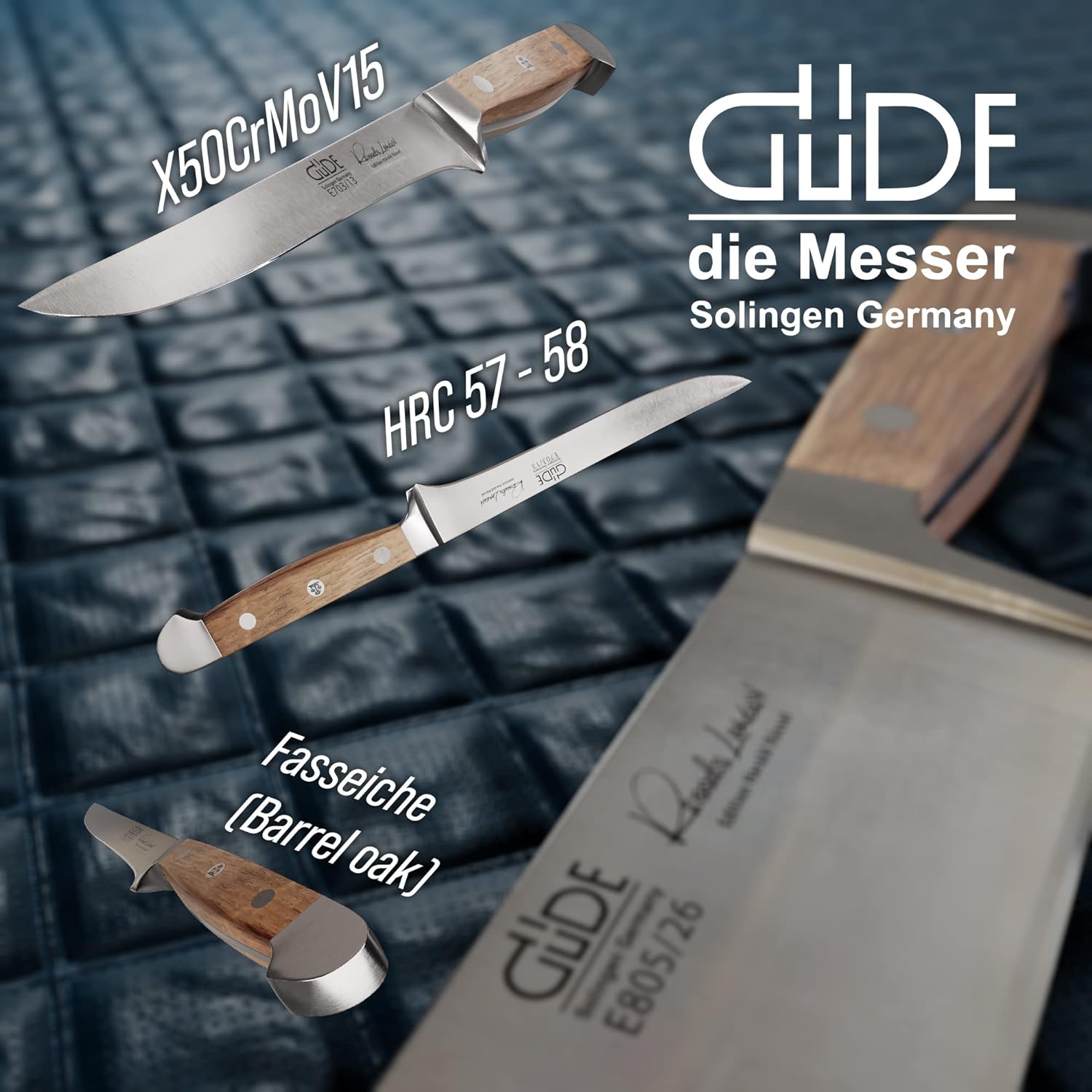- Die professionellen GÜDE Werkzeuge für die Küche, werden traditionell und in über 40 manuellen Handarbeitsschritten gefertigt. Nach Handabzug der Klinge, bietet das Messer eine extreme Schärfe und ideale Schneideigenschaften. Handmade aus Solingen