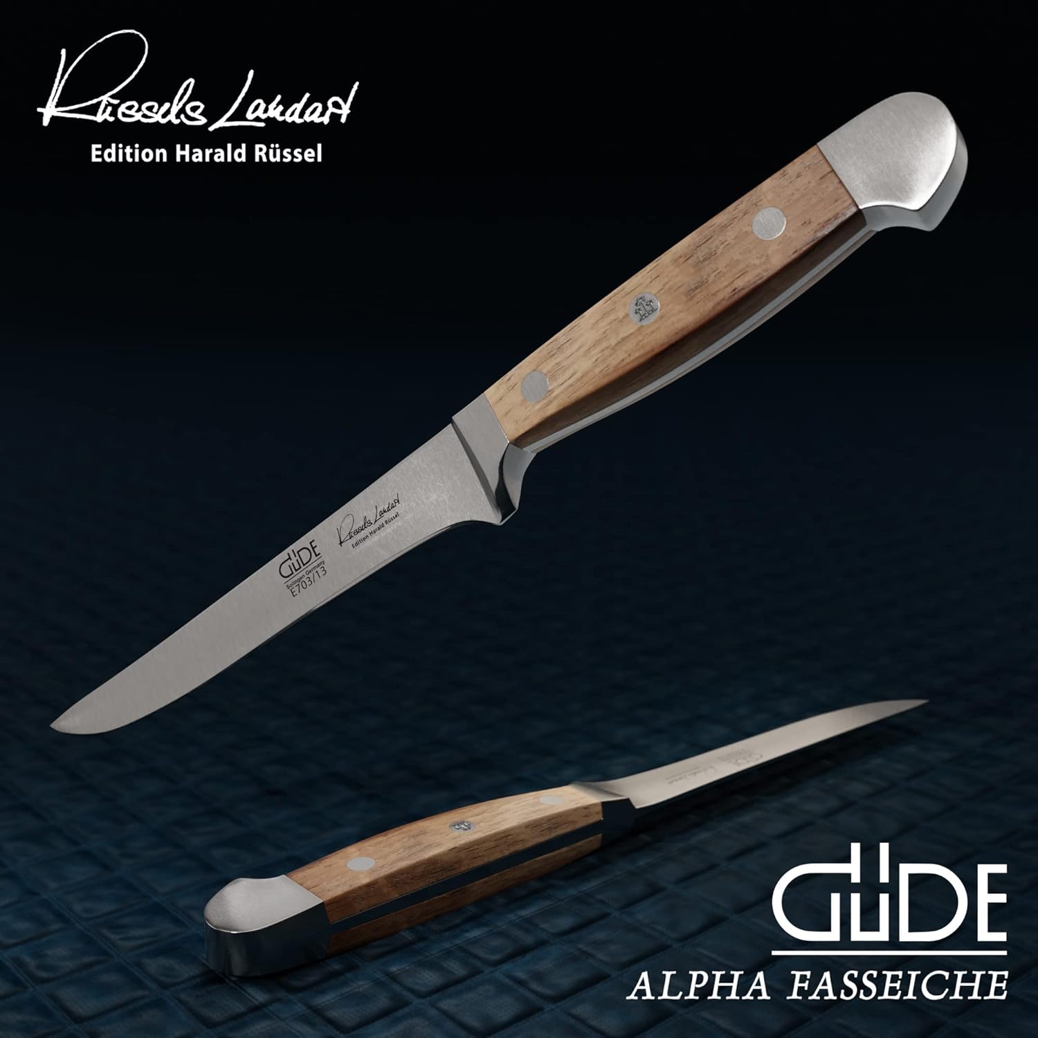 - Die GÜDE Alpha Fasseiche wurde in Zusammenarbeit mit dem Sternekoch Harald Rüssel entwickelt. Über 80 Jahre gereifte Weinfässer aus dem Weingebiet Mosel, treffen auf Solinger Schmiedekunst. Zwei Traditionen wurden zu einem Meisterwerk verschmolzen