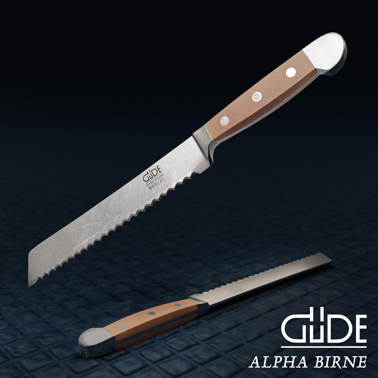 GÜDE Solingen - Brotmesser Für Links und Rechtshänder geschmiedet, 21 cm, Birnenholz, ALPHA BIRNE, D