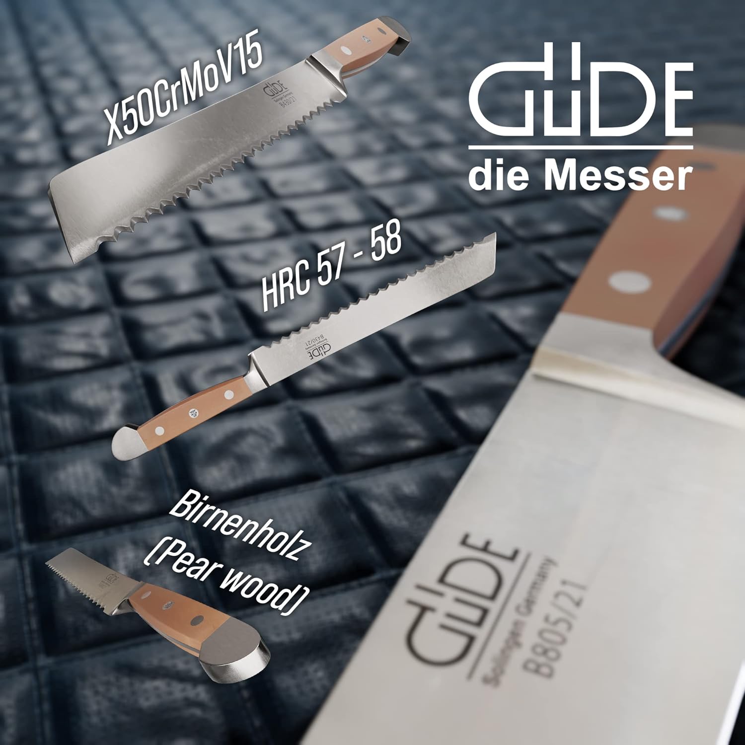• Der weltweit bekannte GÜDE Wellenschliff findet zurecht seinen Platz in der Geschichte der Messerherstellung. Eine besondere Technik in der Zahnung des Wellenschliffs, macht dieses beidseitig geschliffene Brotmesser zu einem konkurrenzlosem Produkt