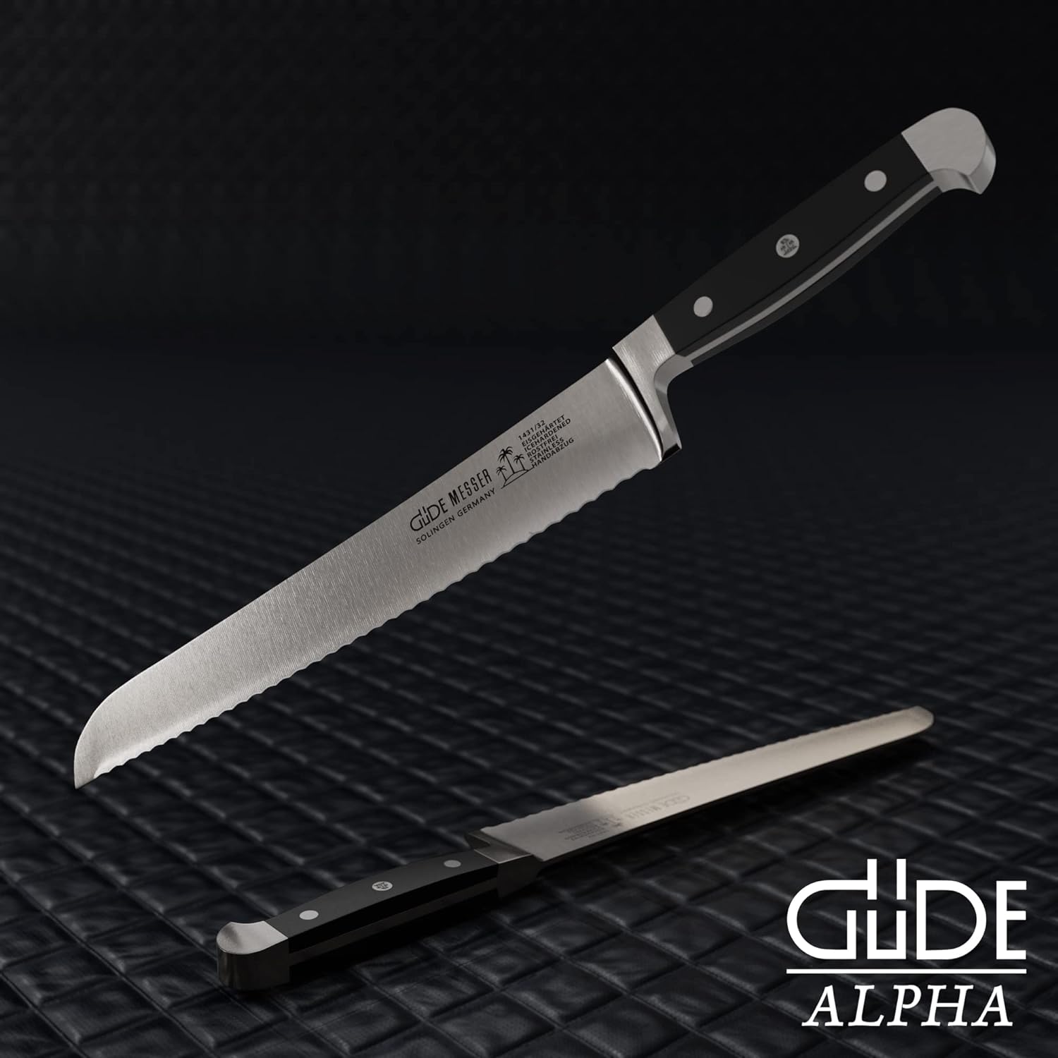 GÜDE Solingen - Brotmesser geschmiedet, 32 cm, POM schwarz, ALPHA, Doppelkropf, Handmade Germany 32