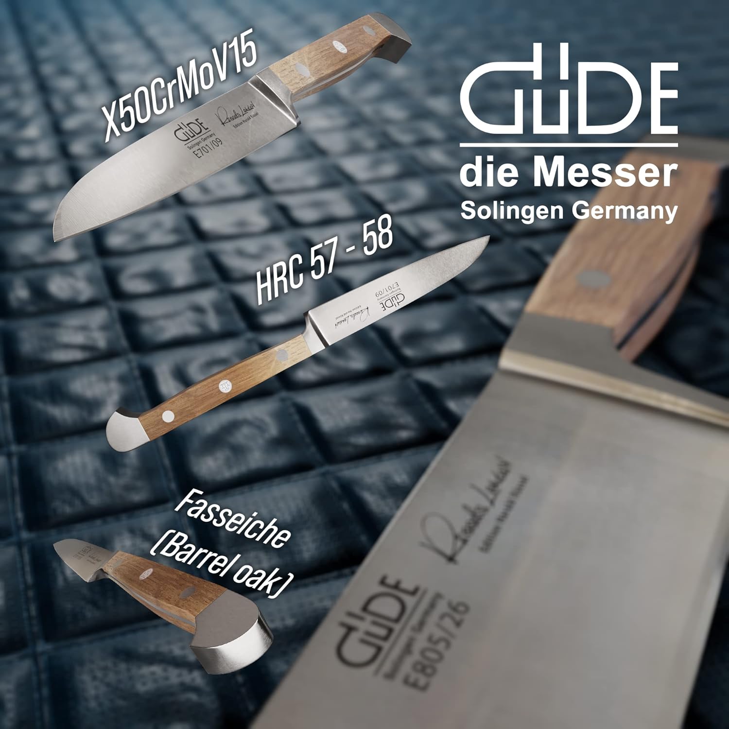 - Die GÜDE Alpha Fasseiche wurde in Zusammenarbeit mit dem Sternekoch Harald Rüssel entwickelt. Über 80 Jahre gereifte Weinfässer aus dem Weingebiet Mosel, treffen auf Solinger Schmiedekunst. Zwei Traditionen wurden zu einem Meisterwerk verschmolzen